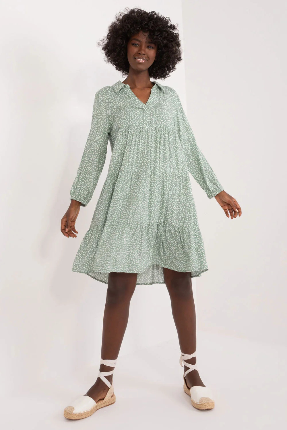 Šaty oversize jsou kvintesencí pohodlí a ležérního stylu, ideální pro letní dny, které vyžadují lehkost a pohodlí. Jejich volný střih je ideální pro každodenní situace a zároveň vytváří trendy vzhled. Letní šaty zaujmou svým ležérním stylem, který je ideální pro různé příležitosti. Jsou vyrobeny z lehké viskózy, zaručují příjemný pocit na kůži a jsou ideální pro teplé dny. Střih oversize umožňuje volnost pohybu a zároveň zdůrazňuje ležérní charakter tohoto oděvu. Dominantním vzorem je originální potisk, který šatům dodává osobitý nádech. Díky dlouhému rukávu a délce ke kolenům jsou šaty ideální volbou pro letní večery, kdy si chladnější vzduch žádá lehké zahalení. Šaty mají límeček a srdíčkový výstřih, který dodává šatům jemnost a ženský půvab. Absence zapínání usnadňuje nošení a volánek ve spodní části dodává šatům lehkost a dívčí půvab. Tyto oversize šaty jsou ideální volbou pro ženy, které ocení pohodlí, ležérní styl a letní nonšalanci. Jsou harmonickým spojením funkčnosti, módního designu a lehkosti, které vytváří jedinečný každodenní vzhled.