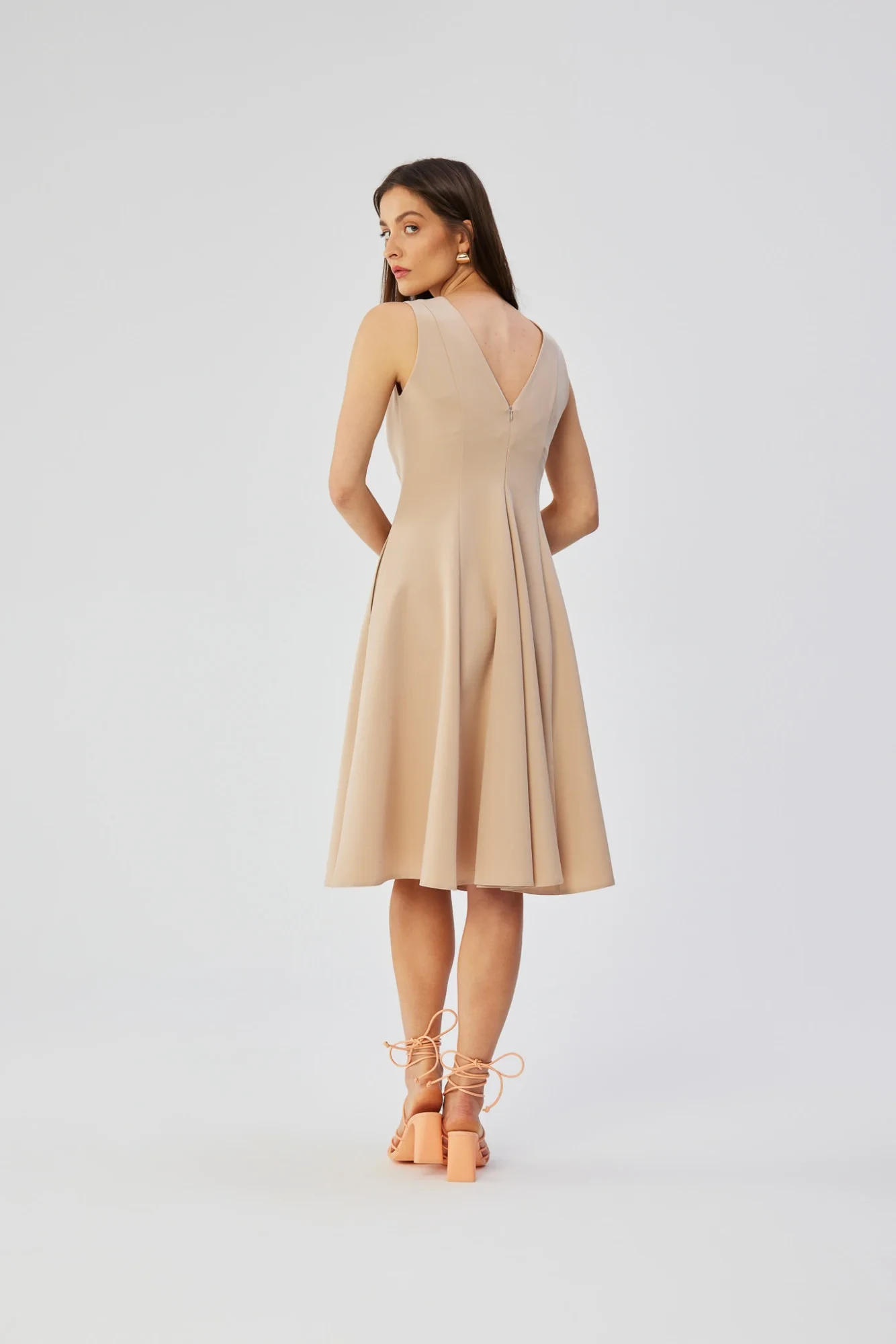 Vstupujeme do světa polského designu a představujeme jedinečné šaty, které vyzařují styl, eleganci a pečlivé řemeslné zpracování. Tento jedinečný výtvor byl navržen a ušit v Polsku s důrazem na detail a individualitu. Šaty bez rukávů zaujmou vypasovaným střihem v horní části, který zdůrazňuje půvaby postavy, aby se později směrem dolů jemně rozšířily. Silně naznačený pas dodává šatům ženský půvab a neobyčejnou eleganci, díky níž se každá žena, která je nosí, cítí výjimečně. Podlouhlé zeštíhlující prošití dodává šatům jemné tvarování a zvýrazňuje přednosti postavy. Kulatý výstřih vpředu dodává šatům klasický vzhled, zatímco výstřih do V na zádech dodává šatům nádech smyslné rafinovanosti. Skrytý zip umístěný na zádech poskytuje elegantní a zároveň praktický způsob, jak šaty obléknout. Jako bonus přidávají boční kapsy šatům ležérní nádech a činí z nich praktickou a pohodlnou volbu. Šaty sahají nad kolena, takže jsou ideální volbou pro mnoho příležitostí, jak formálnějších, tak ležérnějších. Navzdory své eleganci nemají šaty žádnou podšívku, takže jsou lehké, vzdušné a ideální pro teplejší dny. Jsou skutečným dílem krejčovského umění, z něhož vyzařuje polské řemeslo a tradice.