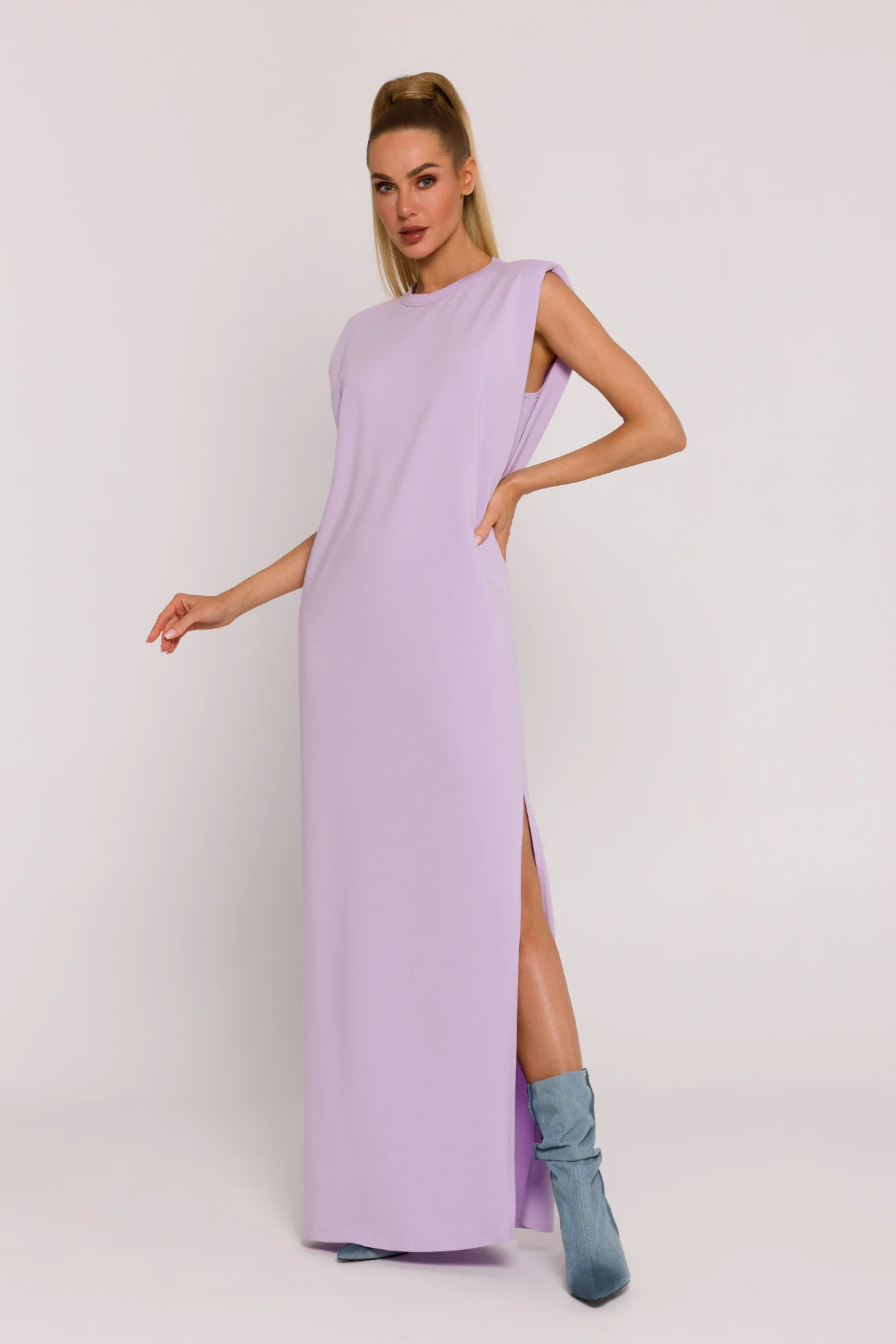 Tyto pletené šaty jsou výrazem luxusu a výjimečné polské krejčovské práce, kde se v jednom designu snoubí smysl pro detail a pohodlí. Jsou navrženy a ušity v Polsku a představují jedinečný styl a pohodlí při nošení. Šaty nadměrné velikosti jsou ideální volbou pro ženy, které si cení volnosti pohybu, aniž by obětovaly eleganci. Díky svému střihu, který se nosí přes hlavu, se mimořádně snadno a pohodlně nosí. Rozparky na bocích dodávají šatům lehkost a jemnou smyslnost. Provedení šatů bez rukávů, podpořené ramenními vycpávkami, dodává celému vzhledu moderní a jedinečný nádech. Ramenní vycpávky dodávají šatům strukturu a zároveň zdůrazňují jejich jedinečný tvar. Díky maxi délce se šaty hodí jak na elegantní vycházky, tak i na neformálnější příležitosti. Ozdobná etiketa na zádech je nejen designovým prvkem, ale také decentním akcentem, který celý design umocňuje. Pečlivé zpracování cínu podtrhuje vysokou kvalitu šatů. Díky absenci podšívky jsou navíc šaty vzdušné a lehké, což je ideální pro teplejší dny. Tyto pletené šaty nejsou pouhým oděvem, ale vyjádřením polské krejčovské tradice, která v sobě spojuje eleganci, pohodlí a jedinečný design. Ideální pro ženy, které se chtějí vyjádřit prostřednictvím módy a zdůraznit svůj individuální styl.
