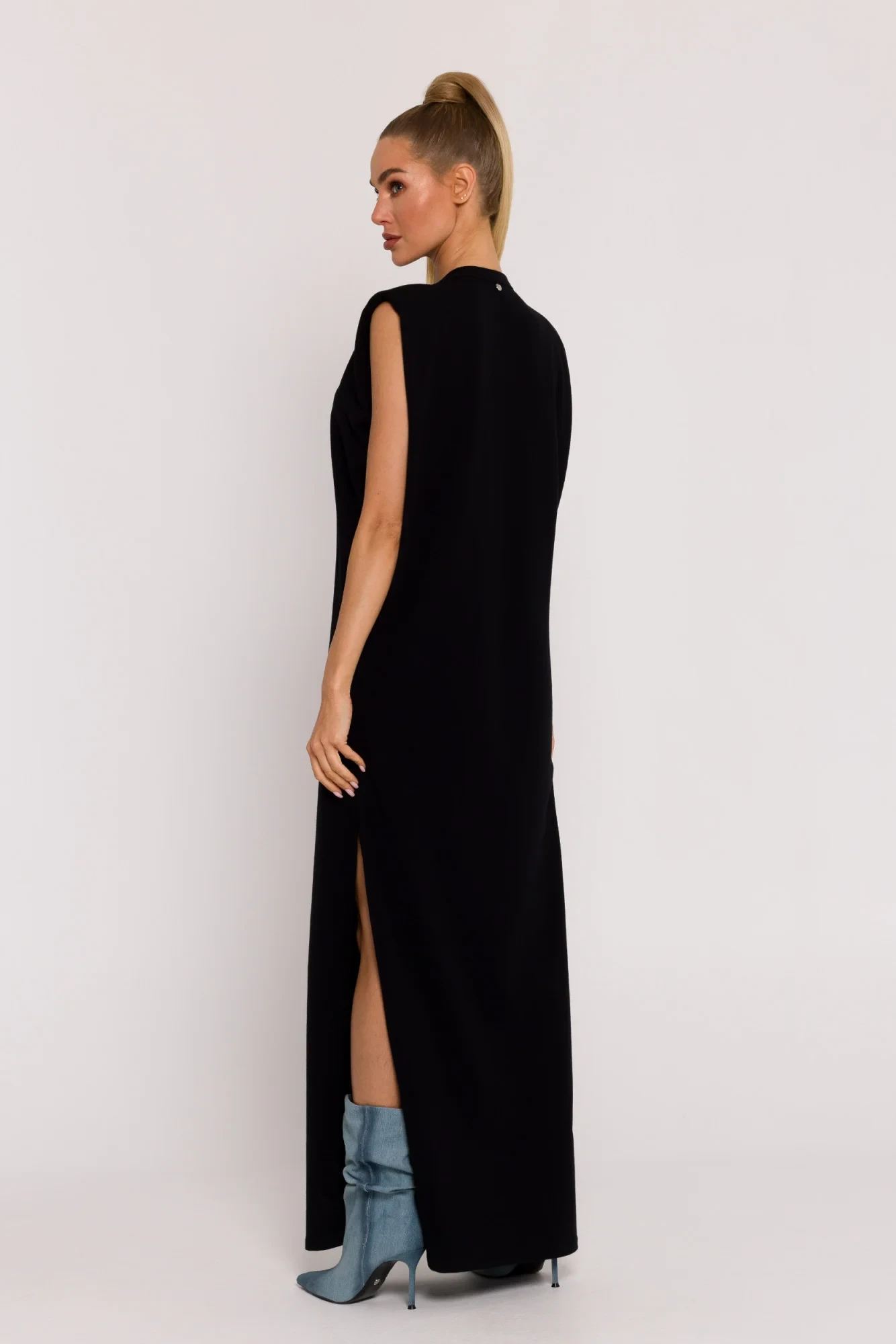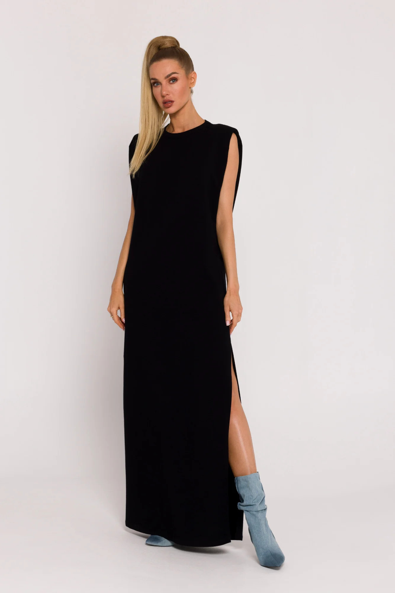 Tyto pletené šaty jsou výrazem luxusu a výjimečné polské krejčovské práce, kde se v jednom designu snoubí smysl pro detail a pohodlí. Jsou navrženy a ušity v Polsku a představují jedinečný styl a pohodlí při nošení. Šaty nadměrné velikosti jsou ideální volbou pro ženy, které si cení volnosti pohybu, aniž by obětovaly eleganci. Díky svému střihu, který se nosí přes hlavu, se mimořádně snadno a pohodlně nosí. Rozparky na bocích dodávají šatům lehkost a jemnou smyslnost. Provedení šatů bez rukávů, podpořené ramenními vycpávkami, dodává celému vzhledu moderní a jedinečný nádech. Ramenní vycpávky dodávají šatům strukturu a zároveň zdůrazňují jejich jedinečný tvar. Díky maxi délce se šaty hodí jak na elegantní vycházky, tak i na neformálnější příležitosti. Ozdobná etiketa na zádech je nejen designovým prvkem, ale také decentním akcentem, který celý design umocňuje. Pečlivé zpracování cínu podtrhuje vysokou kvalitu šatů. Díky absenci podšívky jsou navíc šaty vzdušné a lehké, což je ideální pro teplejší dny. Tyto pletené šaty nejsou pouhým oděvem, ale vyjádřením polské krejčovské tradice, která v sobě spojuje eleganci, pohodlí a jedinečný design. Ideální pro ženy, které se chtějí vyjádřit prostřednictvím módy a zdůraznit svůj individuální styl.
