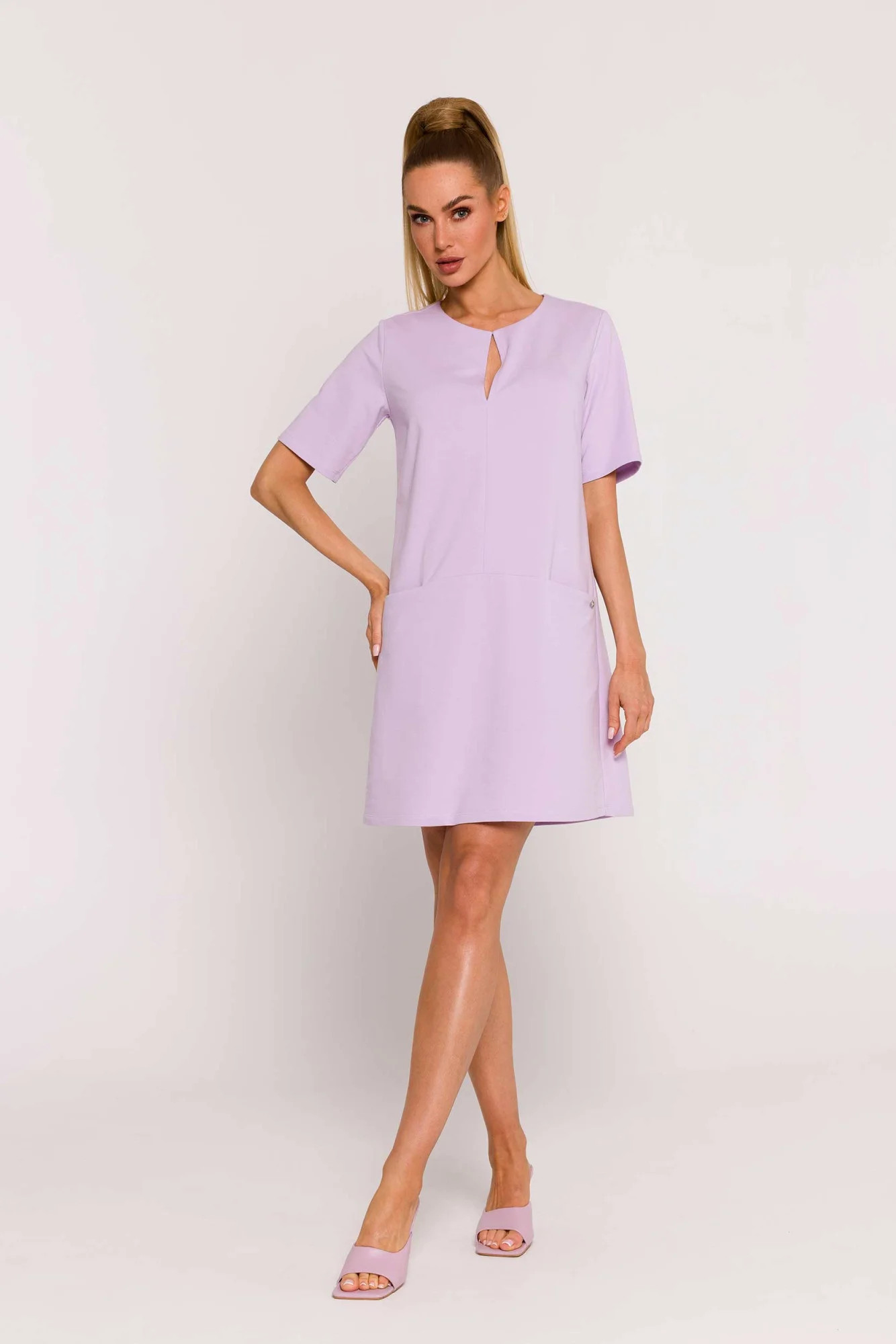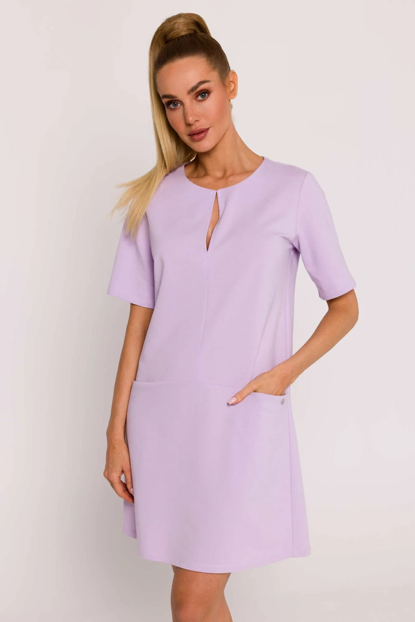 Tyto pletené šaty jsou jedinečným výrobkem, který byl navržen a vyroben s důrazem na detail v Polsku a který podtrhuje vysokou kvalitu a styl polského krejčovství. Šaty mají áčkový střih, který jim dodává lehkost a zároveň zvýrazňuje ženskou siluetu. Jemný výstřih dodává šatům jemnost a vytváří harmonickou rovnováhu mezi elegancí a každodenním pohodlím. Díky krátkým rukávům jsou šaty ideální pro teplejší dny a dodávají celkovému vzhledu lehkost. Praktické boční kapsy skryté ve švech na přední straně šatů jsou nejen funkční, ale také dodávají nonšalanci a městský nádech. Ozdobný štítek s logem umístěný na jedné z kapes je elegantním dekorativním prvkem, který podtrhuje jedinečnost šatů. Za zmínku stojí, že šaty nemají podšívku, díky čemuž jsou lehké a vzdušné, ideální pro letní dny. Tento oděv nejen podtrhuje polský design a krejčovskou tradici, ale také spojuje funkčnost, pohodlí a módní styl. Tyto šaty jsou vynikající volbou pro ženy, které hledají jedinečný kousek oblečení, ideální jak pro každodenní nošení, tak pro zvláštní příležitosti.