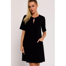 Tyto pletené šaty jsou jedinečným výrobkem, který byl navržen a vyroben s důrazem na detail v Polsku a který podtrhuje vysokou kvalitu a styl polského krejčovství. Šaty mají áčkový střih, který jim dodává lehkost a zároveň zvýrazňuje ženskou siluetu. Jemný výstřih dodává šatům jemnost a vytváří harmonickou rovnováhu mezi elegancí a každodenním pohodlím. Díky krátkým rukávům jsou šaty ideální pro teplejší dny a dodávají celkovému vzhledu lehkost. Praktické boční kapsy skryté ve švech na přední straně šatů jsou nejen funkční, ale také dodávají nonšalanci a městský nádech. Ozdobný štítek s logem umístěný na jedné z kapes je elegantním dekorativním prvkem, který podtrhuje jedinečnost šatů. Za zmínku stojí, že šaty nemají podšívku, díky čemuž jsou lehké a vzdušné, ideální pro letní dny. Tento oděv nejen podtrhuje polský design a krejčovskou tradici, ale také spojuje funkčnost, pohodlí a módní styl. Tyto šaty jsou vynikající volbou pro ženy, které hledají jedinečný kousek oblečení, ideální jak pro každodenní nošení, tak pro zvláštní příležitosti.