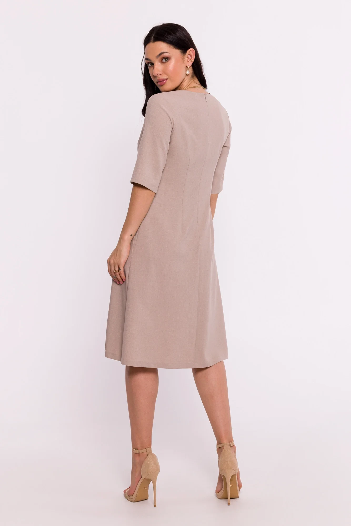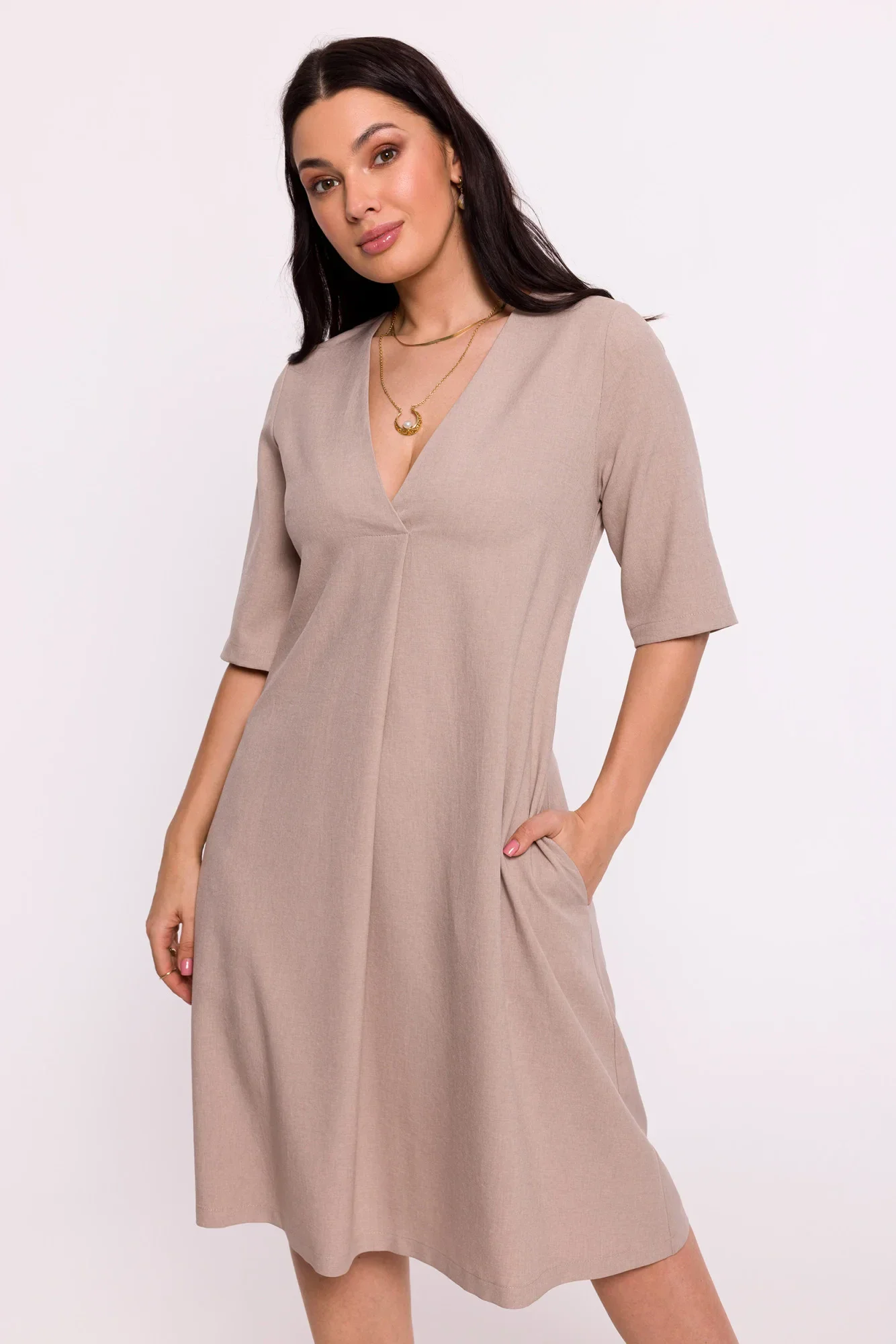 Látkové šaty jsou výjimečným příkladem polského designu, který v sobě spojuje jednoduchost tvaru, funkčnost a eleganci. Tento model, udržovaný ve tvaru lichoběžníku, vypadá mimořádně stylově a je ideální volbou pro mnoho příležitostí. Šaty se pohodlně nosí, protože se nasazují přes hlavu, takže se rychle a pohodlně oblékají. Krátké rukávy dodávají šatům lehkost a působí univerzálně, což je ideální pro teplejší dny. Na zádech je krytý zip, který šatům dodává eleganci a usnadňuje jejich oblékání. Kapsy umístěné v bočních švech jsou praktickým prvkem, který šatům dodává nonšalanci a činí je ještě funkčnějšími. Díky absenci podšívky jsou šaty lehké a příjemné na kůži, ideální pro letní dny. Návrh a výroba šatů probíhá v Polsku, což podtrhuje místní charakter a důraz na kvalitu zpracování. Tyto šaty jsou nejen výrazem elegance, ale také hrdosti na polské řemeslo a design, spojující jednoduchost tvarů s vysokým standardem pohodlí.