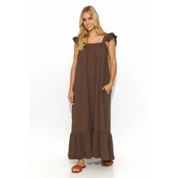 Maxi šaty s volánky na ramínkách a ve spodní části jsou kvintesencí letního stylu a ležérnosti. Díky praktickým postranním nakládaným kapsám vypadají šaty nejen stylově, ale jsou také funkční. Díky volnému střihu jsou mimořádně pohodlné a vhodné pro nejrůznější příležitosti. Lze je nosit volně, a zvolit tak lehkost a ležérnost, nebo je sepnout páskem, který zvýrazní pas a dodá kreaci výraznější tvar. Je k dispozici v různých barvách, takže vám umožní přizpůsobit se vašemu stylu a náladě. Tyto šaty jsou ideální na procházku po molu nebo na romantickou večeři při západu slunce, budete v nich vypadat nejen stylově, ale budou také pohodlné a lehké na nošení, takže si budete moci naplno užívat letních chvil.