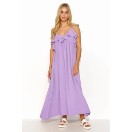Dlouhé oversize šaty na tenkých ramínkách ze splývavé a vzdušné látky. Náš výtvor je ideální pro velmi teplé jaro a léto. Na zadní straně šatů je na úrovni zad stylový třpyt, který dodává celému stylu jemný lesk. Volánek, který jemně obepíná výstřih a záda šatů, zase dodává smyslný nádech. Spodní část šatů je mimořádně ležérní, což vám umožní tančit, procházet se nebo si hrát s dětmi. Šaty se dodávají v módních barevných variantách. Díky našemu stylingu budete nepochybně vypadat šik jak v rodném městě, tak na rande s milovaným partnerem nebo na procházce s rodinou a přáteli. Délka šatů měřená od podpaží.