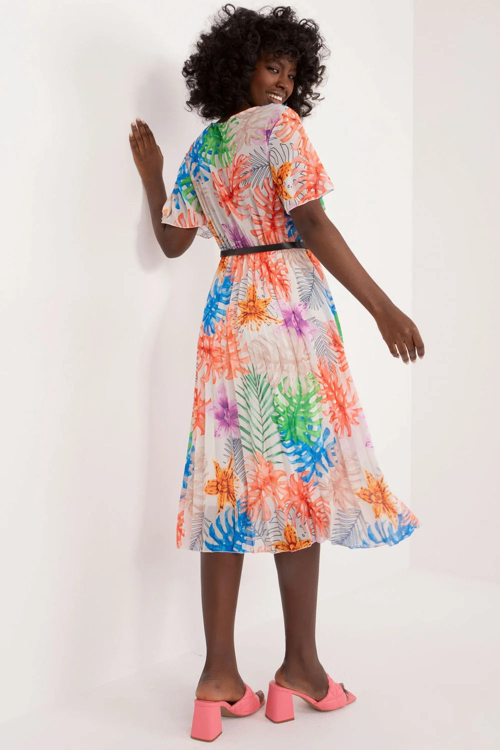 Tyto šaty jsou typickým příkladem každodenní elegance, která ozvláštní každý den. Jejich rozšířený střih poskytuje volnost pohybu a zároveň zvýrazňuje ženskou siluetu. Spodní část šatů zdobí záhyby, které celému vzhledu dodávají lehkost a jemnost. Tyto šaty jsou vyrobeny z polyesteru, takže nejen skvěle vypadají, ale také se snadno udržují a příjemně nosí. Díky své midi délce se hodí pro mnoho příležitostí, od procházek po městě až po setkání s přáteli. Díky krátkým rukávům se šaty pohodlně nosí i v teplejších dnech, zatímco obálkový výstřih dodává šatům jemný půvab a ženský nádech. Šaty mají zapínání na pásek, který zvýrazňuje pas a dodává siluetě proporce. Díky podšívce pro větší pohodlí jsou tyto šaty kombinací stylu, pohodlí a elegance, díky níž se budete cítit sebevědomě a krásně každý den. Tyto šaty, které jsou ideální pro každodenní vycházky, se rychle stanou oblíbeným kouskem vašeho šatníku.