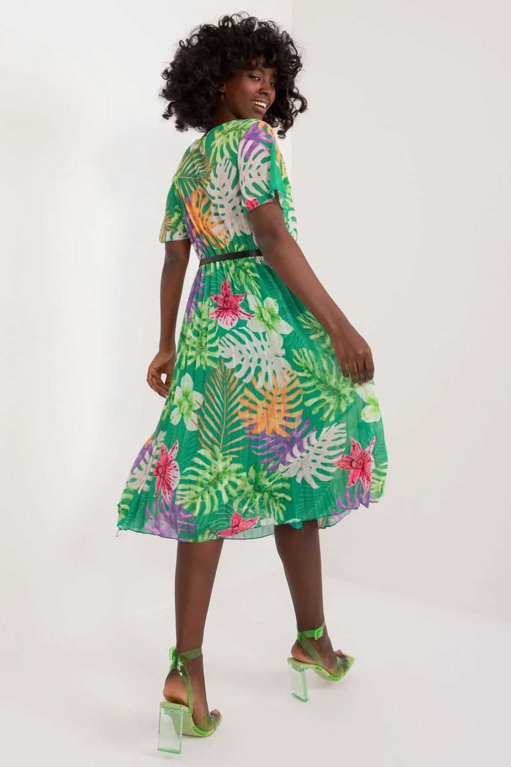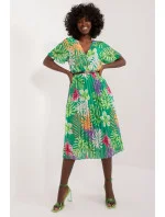Tyto šaty jsou typickým příkladem každodenní elegance, která ozvláštní každý den. Jejich rozšířený střih poskytuje volnost pohybu a zároveň zvýrazňuje ženskou siluetu. Spodní část šatů zdobí záhyby, které celému vzhledu dodávají lehkost a jemnost. Tyto šaty jsou vyrobeny z polyesteru, takže nejen skvěle vypadají, ale také se snadno udržují a příjemně nosí. Díky své midi délce se hodí pro mnoho příležitostí, od procházek po městě až po setkání s přáteli. Díky krátkým rukávům se šaty pohodlně nosí i v teplejších dnech, zatímco obálkový výstřih dodává šatům jemný půvab a ženský nádech. Šaty mají zapínání na pásek, který zvýrazňuje pas a dodává siluetě proporce. Díky podšívce pro větší pohodlí jsou tyto šaty kombinací stylu, pohodlí a elegance, díky níž se budete cítit sebevědomě a krásně každý den. Tyto šaty, které jsou ideální pro každodenní vycházky, se rychle stanou oblíbeným kouskem vašeho šatníku.