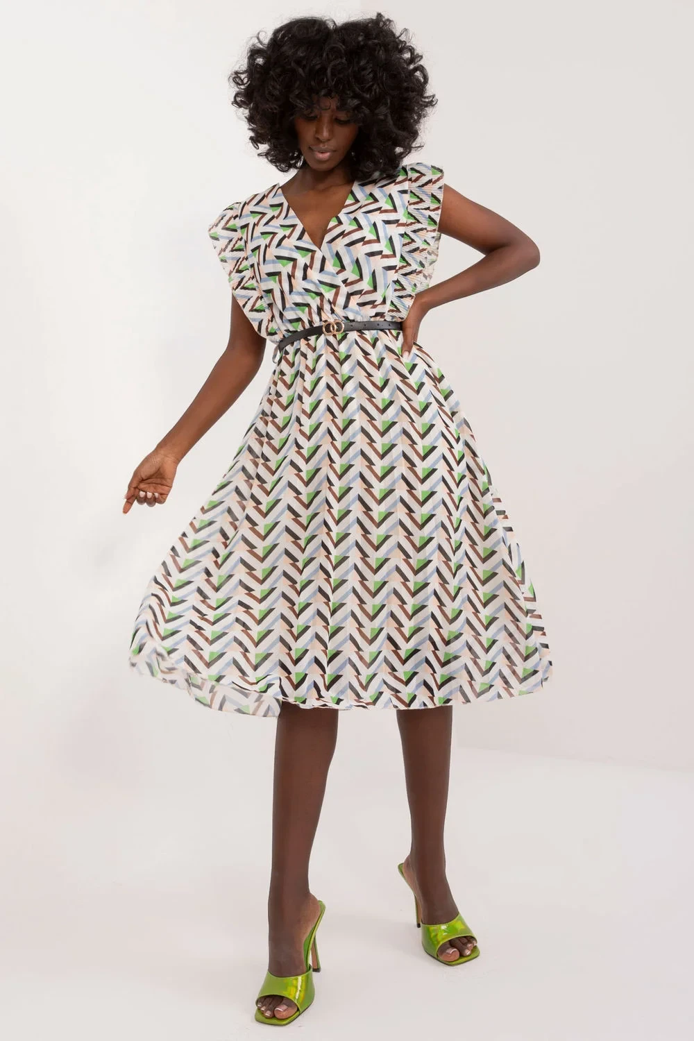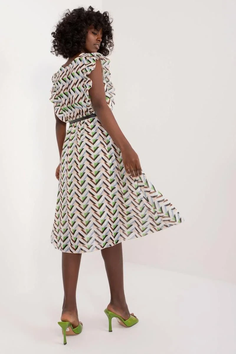 Plisované letní šaty s krátkými rukávy s volánkovým vzorem pro mnoho příležitostí. Šaty mají podšívku, pružný pas a srdíčkový výstřih. Kromě volánů jsou šaty s rozšířeným střihem doplněny páskem v pase.