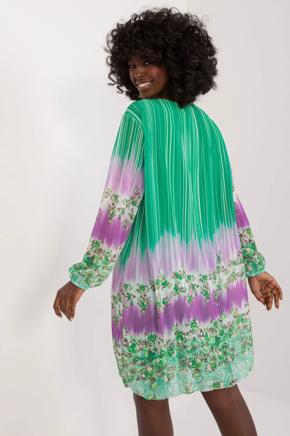 Tyto šaty s barevným potiskem jsou ideální volbou pro každodenní nošení. Jsou vyrobeny převážně z polyesteru a poskytují pohodlí a odolnost. Díky délce pod kolena a rovnému střihu jsou univerzální a snadno se kombinují s různými kousky šatníku. Šaty mají kulatý výstřih pro klasický vzhled a díky dlouhým rukávům se pohodlně nosí i v chladnějších dnech. Barevný potisk dodává šatům charakter a oživí každý outfit. Jsou ideální na běžné vycházky, kdy chcete vypadat stylově a cítit se pohodlně.