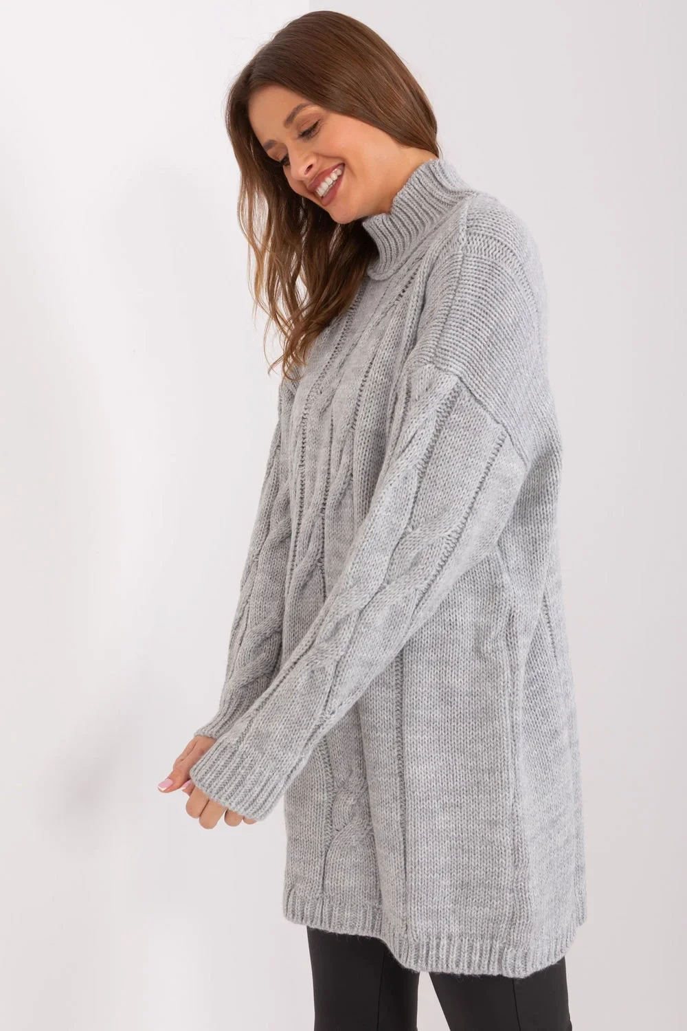 Každodenní rolákem šaty vyrobené z měkké směsi akrilu a vlny. Šaty sahají před koleno, což jim dodává univerzální charakter, ideální pro každodenní nošení. Různorodá textura tkaniny přidává jemnou eleganci a originalitu, díky čemuž se šaty vyznačují mezi ostatními. Dlouhý rukáv poskytuje pohodlí a teplo, činí je ideální volbou na chladnější dny. Casual styl zajišťuje, že se šaty skvěle hodí jak na setkání s přáteli, tak i na nákupy nebo do práce, kombinují pohodlí s módním vzhledem.