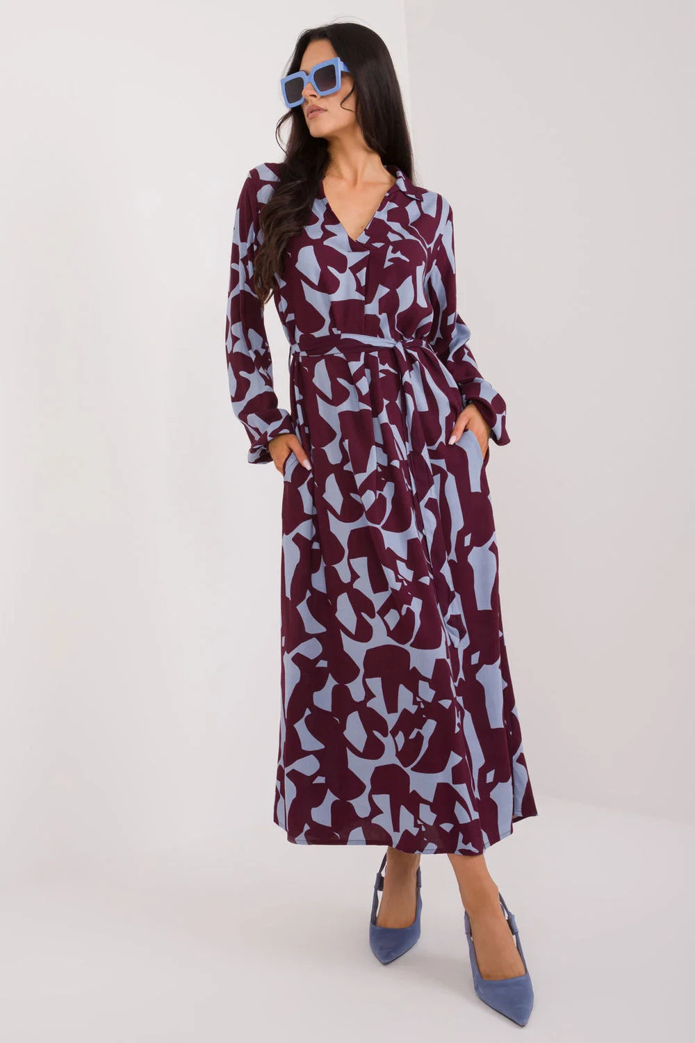 Každodenní košilové šaty v oversized stylu, ideální na každý den a do práce. Vyrobeno z ekologické viskózy, spojuje módní styl s ohledem na životní prostředí. Maxi šaty s potiskem vynikají elegantním výstřihem a límečkem, které dodávají klasický charakter. Dlouhý rukáv a pás na vázání v pasu umožňují dokonalé přizpůsobení postavě, poskytující pohodlí a volnost pohybu. Je to stylový a pohodlný návrh pro různé příležitosti, spojující módní vzhled s ekologickými hodnotami.