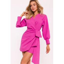 Stylové mini šaty s překlopeným střihem, vyrobené z vysokokvalitní bavlněné látky. Šaty jsou přivázané na boku, co umožňuje ideální přizpůsobení postavy, asymetrický přední díl dodává moderní charakter. Dlouhé rukávy zajišťují elegantní vzhled a absenci podšívky dělají šaty lehkými a pohodlnými na nošení. Navrženo a vyrobeno v Polsku, tyto šaty spojují pohodlí a jedinečný styl, ideální na různé příležitosti.