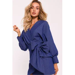 Stylové mini šaty s překlápěcím střihem, šité z vysokokvalitní bavlněné látky. Šaty jsou zapínány po straně, což umožňuje ideální přizpůsobení postavy, a asymetrický přední díl dodává moderní charakter. Dlouhé rukávy zajišťují elegantní vzhled a absence podšívky zaručuje, že jsou lehké a pohodlné na nošení. Tyto šaty jsou navrženy a vyrobeny v Polsku a spojují v sobě pohodlí a výjimečný styl, ideální na různé příležitosti.