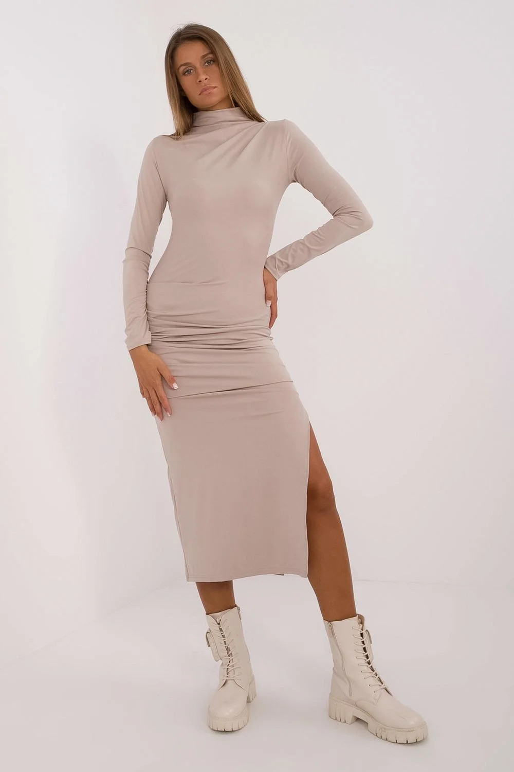 Tyto každodenní šaty s rolákem a tužkou z hladké jednobarevné tkaniny jsou ideální volbou pro každý den. Jsou vyrobeny z převážně viskózové tkaniny a nabízejí pohodlný střih a jemné vypasování siluety. Dlouhý rukáv a midi délka jim dodávají elegantní a zároveň ležérní vzhled. Šaty zdobí jemné záhyby, které podtrhují jejich jedinečný střih a dodávají jim styl. Jsou ideální volbou pro ženy, které ocení jednoduchost s nádechem každodenní elegance.