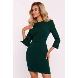 Mini šaty střižené v pase, vyrobené z vysoce kvalitní látky pro elegantní vzhled a pohodlné nošení. Rukávy v délce 7/8 mají ve spodní části jemné rozparky a ozdobnou vsadku na rameni, která dodává šatům jedinečný nádech. Šaty se vzadu zapínají na krytý zip a rozparek ve spodní části zajišťuje volnost pohybu. Model nemá podšívku, takže je lehčí a ideální pro různé příležitosti. Šaty byly navrženy a ušity v Polsku, což zaručuje nejvyšší kvalitu a smysl pro detail.