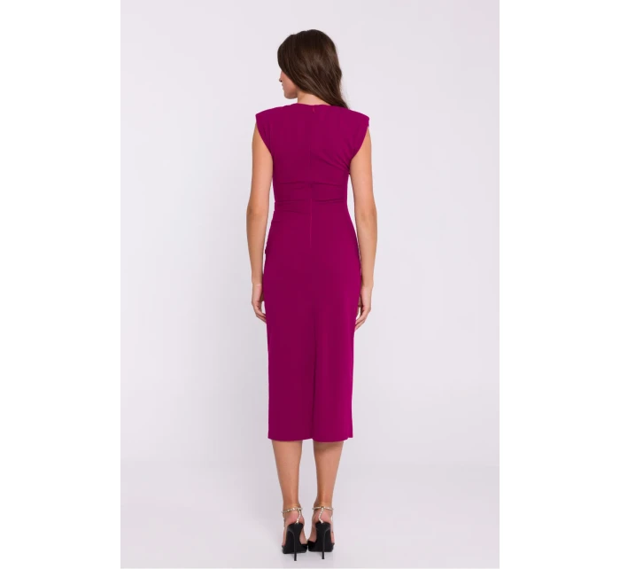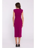 Tyto elegantní trubicové šaty z elastického úpletu jsou kvintesencí minimalismu a moderního stylu. Přiléhavý střih bez rukávů v midi délce krásně zvýrazňuje siluetu, zatímco záhyby na bocích v úrovni pasu dodávají jemnou strukturu a zeštíhlují linii těla. Na ramenou vnášejí jemné ramenní vycpávky geometrický nádech a dodávají siluetě výraznější tvar. Šaty mají na zádech krytý zip a ve spodní části diskrétní rozparek pro pohodlné nošení a volnost pohybu. Díky absenci podšívky jsou šaty lehké a pohodlné. Jsou navrženy a ušity v Polsku, což zaručuje vysokou kvalitu a precizní zpracování.