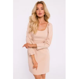 Okouzlující mini šaty z vysoce kvalitní látky, ideální pro zvláštní příležitosti. Střih pod prsy zdůrazňuje ženskou siluetu, zatímco hluboký čtvercový výstřih dodává originalitu a decentně odhaluje dekolt. Šaty mají dlouhé rukávy s jemnými ramenními puky, které dodávají objem, a záševky ve spodní části pro dokonalé přizpůsobení. Krytý zip na zádech umožňuje pohodlné nošení a dokonalé přizpůsobení. Šaty jsou lehké a bez podšívky. Jsou navrženy a ušity v Polsku a jsou kvintesencí elegance a ženského šarmu.