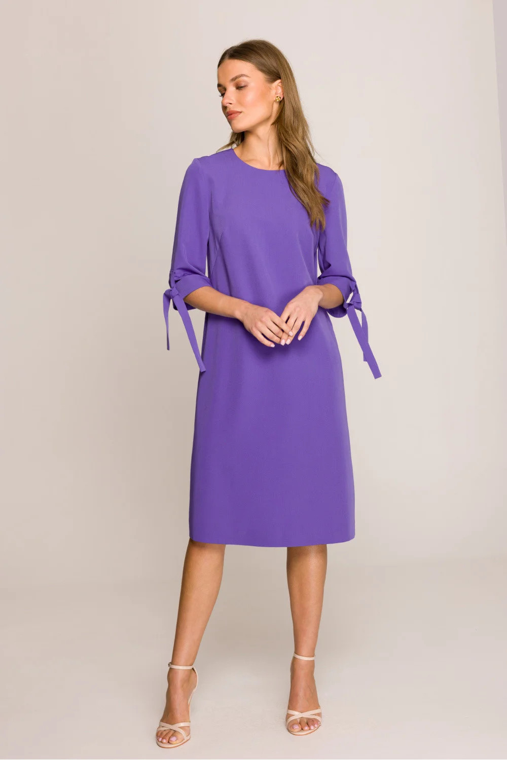 Šaty ve tvaru písmene A, které jemně zdůrazňují postavu, zachovávají elegantní a pohodlný charakter. Vyrobené z vysoce kvalitní látky, která poskytuje pohodlí po celý den. Délka pod koleno jí dodává univerzálnost, co ji činí ideální jak na každý den, tak i na formální příležitosti. 3/4 rukávy s otočením a jemným vázáním jí dodávají lehkost a ženskost. Kulatý výstřih jemně zdůrazňuje krk, a skrytý zip na zádech zajišťuje snadné oblékání. Šaty byly navrženy a ušity v Polsku, co zdůrazňuje jejich vysokou kvalitu a péči o detaily. Bez podšívky, co z nich dělá ještě lehčí a volnější na nošení. Ideální volba pro ženy, které oceňují eleganci, jednoduchost a pohodlí.