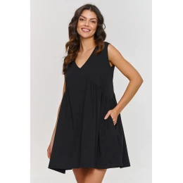 Tato dresová šaty trapézového střihu jsou skvělou volbou pro ženy, které ocení pohodlí a styl. Byly navrženy ve volném střihu, který poskytuje plnou volnost pohybu. Trapézový střih umožňuje skrýt široká boky nebo plnější stehna, dodávající postavě vyváženější vzhled. Šaty mají výstřih do srdíčka, co zdůrazňuje jejich jemnost a ženskost. Mini délka je skvělý způsob, jak zdůraznit nohy a zároveň podtrhnout lehkost a smyslnost. Model je vyroben z bavlněného a příjemného materiálu, který je prodyšný a vzdušný, což z něj činí skvělou volbu na teplejší dny. Dresová šaty se vyznačují multifunkčností a nadčasovým stylem. Ideální pro procházky s lehkými sandálky na ploché podrážce, na setkání s přáteli s pohodlnými baletkami nebo na večerní výlety v kombinaci s elegantními podpatky a jemnými šperky.