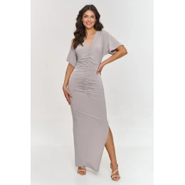 Tato maxi šaty jsou skvělou volbou na svatbu, večeři, večírek nebo setkání s přáteli. Jejich jedinečný střih se zařasením podél střední části dokonale zdůrazňuje postavu, dodává jí štíhlost a eleganci. Volné rukávy spojují klasický styl s moderním pohodlím. Elegantní výstřih do tvaru srdce opticky prodlužuje krk, dodává celému modelu jemnost a smyslný charakter. Tento střih výstřihu dělá šaty velmi ženské a současně elegantní. Jemné proříznutí po straně jim dodává nejen dynamiku, ale i trochu koketnosti. Model je vyroben z elastické látky, která díky své pružnosti krásně obepíná tělo a přizpůsobuje se postavě. Naše elegantní maxi šaty díky spojení elegance, pohodlí a ženskosti se stanou skvělým prvkem vaší šatníku na speciální události. Stačí přidat elegantní sandály nebo lodičky a vytvořit tak jedinečný outfit. Elastan 6 %
