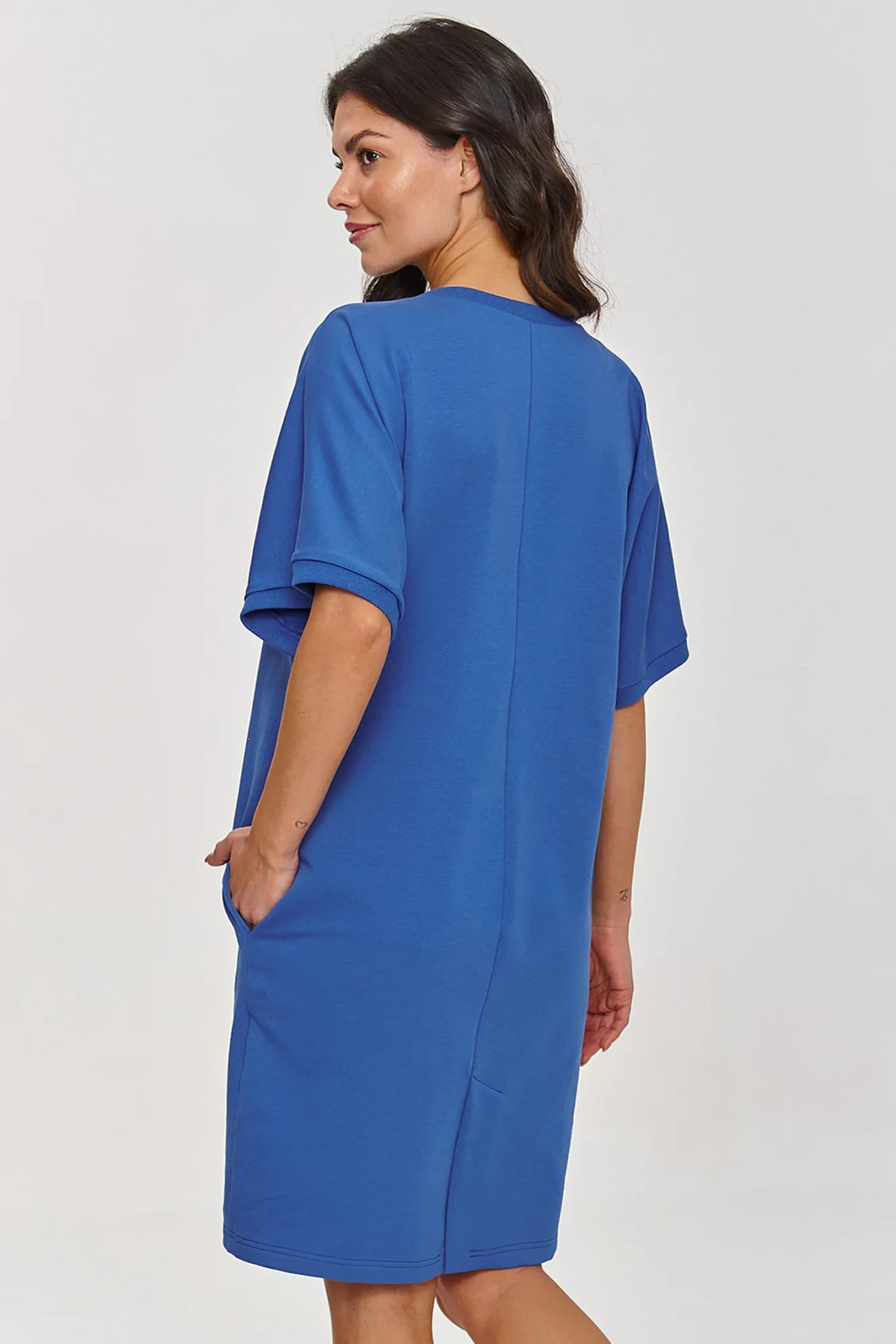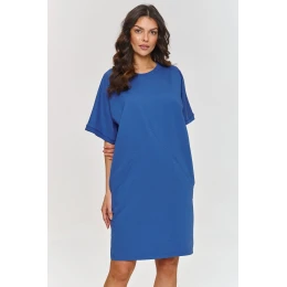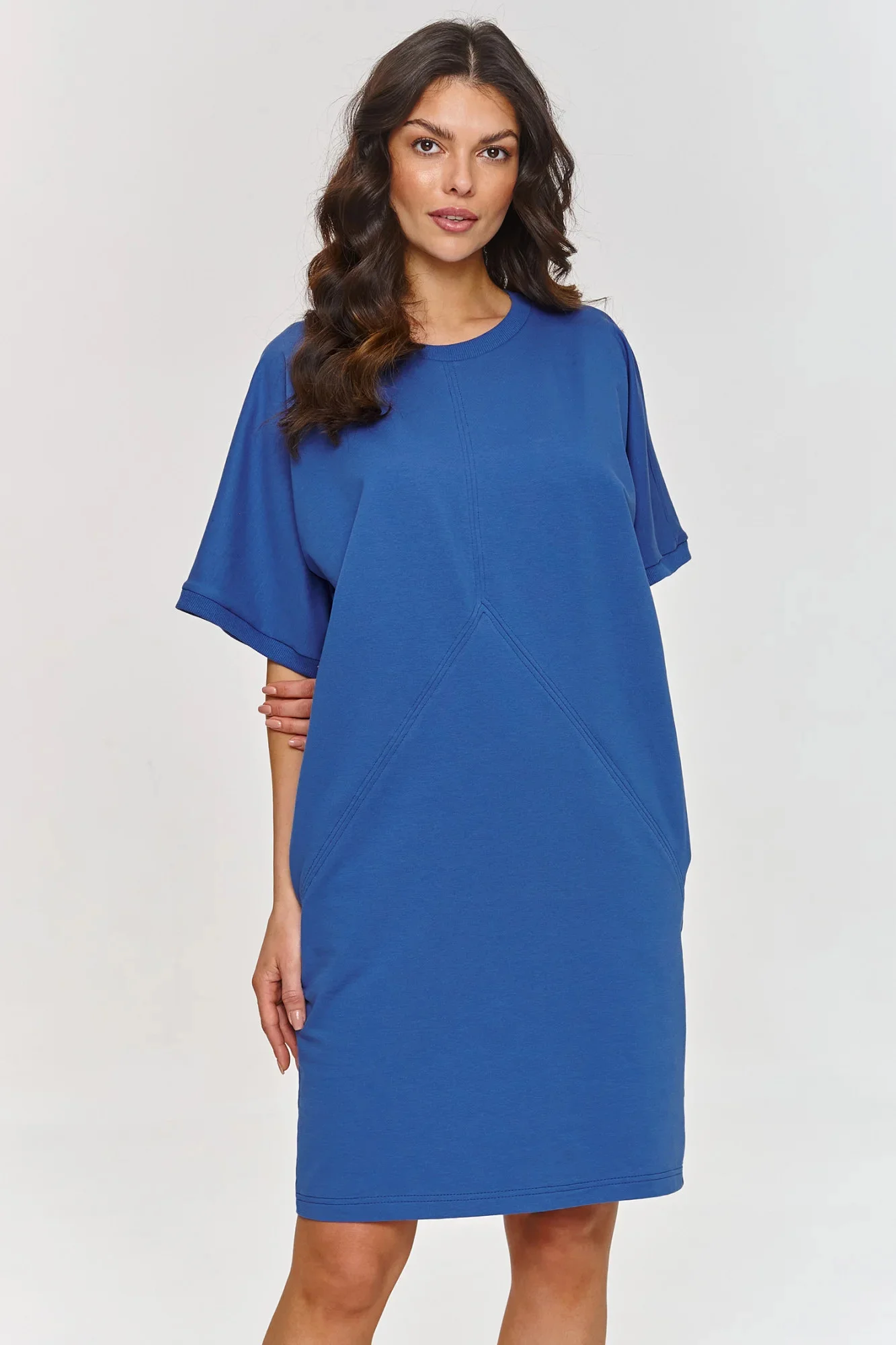 Šaty s krátkými rukávy jsou skvělou volbou pro ženy, které ocení jednoduchost a eleganci v každodenních stylizacích. Jejich volný střih s lehkými detaily, jako jsou švy na přední straně, jí dodávají moderní, ale zároveň univerzální charakter. Široký rukáv sahající k lokti přináší volný, ležérní akcent, zatímco zůstává elegantní. Výstřih šatů má klasický, kulatý tvar, který jemně zdůrazňuje krk, zachovávajíc jednoduchost kreace. Kapsy po stranách jsou praktickým prvkem, který přidává funkcionalitu, zatímco zachovává minimalistický vzhled. Model má délku po kolena, což dokonale zdůrazňuje nohy, vytvářejíc svěží, lehký vzhled. Šaty se hodí k mnoha stylizacím a jsou skvělým pozadím pro módní doplňky. Můžete je kombinovat s elegantními doplňky na večerní vycházku nebo s ležérními na každý den. Díky jednoduchému, ale efektnímu střihu jsou ideální základ pro každý den, do práce, na setkání s přáteli nebo víkendový výlet. S jejich pomocí vytvoříte svěží, elegantní stylizace, které snadno sladíte se svým stylem.