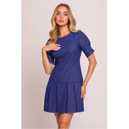 Šaty mini vyrobené z vysoce kvalitní bavlněné látky, která zajistí pohodlí a prodyšnost. Střih s mírně sníženým pasem jemně zdůrazňuje postavu, a kontrafaldy v dolní části dodávají lehkost a eleganci. Krátké rukávy zdobené záložkami a dekorativními knoflíky dodávají celku zvláštní charakter. Šaty se zapínají na skrytý zip na zádech, bez podšívky, co zajišťuje, že jsou lehké a příjemné na nošení. Navrženo a ušito v Polsku s důrazem na každý detail.
