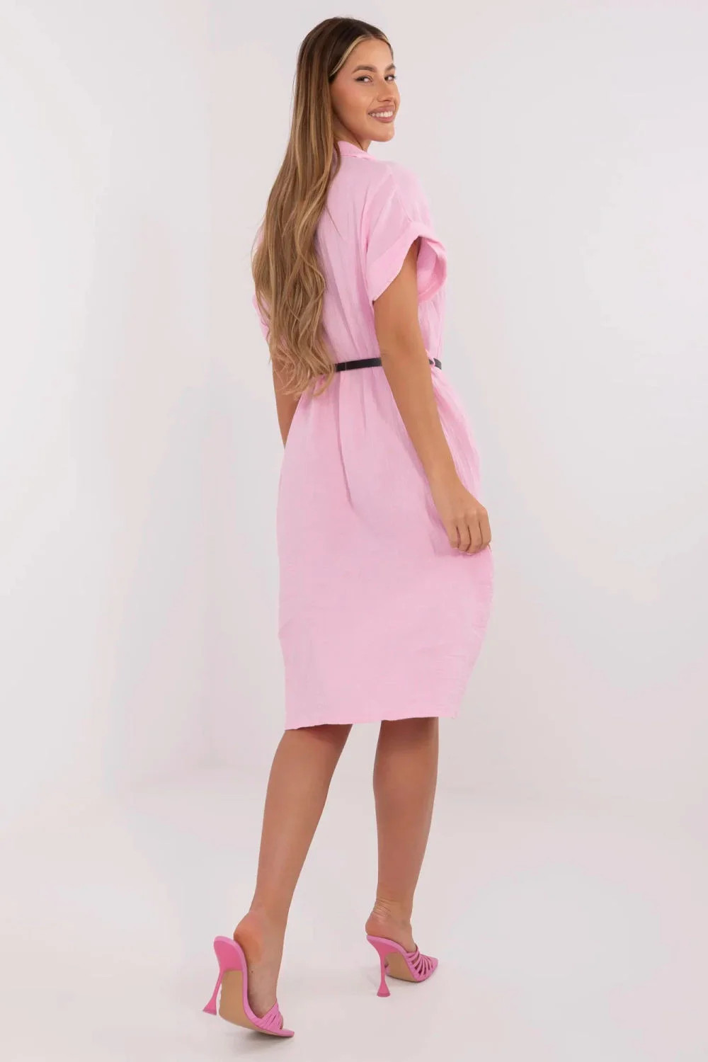 Klasické mušelínové šaty s jednoduchým střihem jsou ideální volbou na každý den i do práce. Vyrobené z prodyšné 100% bavlny poskytují pohodlí po celý den, i v teplejších dnech. Hladká látka a decentní design dělají z šatů skvělý doplněk minimalistického, ale elegantního stylu. Model s krátkým rukávem, klasickým límečkem a zapínáním na knoflíky po celé délce. V pasu je pásek, který zdůrazňuje siluetu a umožňuje upravit střih podle vlastních preferencí. Délka po kolena z ní činí univerzální volbu do kanceláře, na schůzky nebo každodenní vycházky. Jedná se o nadčasovou nabídku pro ženy, které oceňují jednoduchost, pohodlí a přírodní materiály ve stylovém provedení.