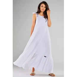 Dlouhé šaty vytvořené pro milovnice romantických a zároveň pohodlných stylizací. Vzor rozšiřovaný dolů dokonale zakrývá drobné nedokonalosti těla. Navrženo a ušito v Polsku.