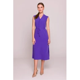 Objevte eleganci a pohodlí v jednom díle díky této jedinečné midi šaty. Navržená a ušitá v Polsku, kombinuje klasický styl s moderními detaily, skvěle odpovídající potřebám současné ženy. Šaty jsou vyrobeny z hladké, lehce elastické látky s saténovým zpracováním, která se krásně přizpůsobuje postavě, poskytující pohodlí při nošení. Její jednoduchý střih s lehce zdůrazněnou talií a tvar lehkého trapézu zaručují elegantní vzhled a volnost pohybu. Midi délka sahající za kolena jí dodává univerzální charakter. Výstřih ve tvaru písmene V s uvázáním dole přidává šatům jemnou smyslnost a umožňuje individuální přizpůsobení. Bez rukávů je ideální volbou na teplejší dny. Praktické rozparky na bocích nejen usnadňují pohyb, ale také přidávají kreaci špetku pikantnosti. V pasu je látkový pás s elegantní sponou, který dokonale zdůrazňuje postavu. Šaty se zapínají na skrytý zip umístěný po straně, což zajišťuje snadné oblékání a neviditelné zakončení. Bez podšívky jsou lehké a prodyšné. Rozhodnete-li se pro tento model, podporujete polské řemeslo a kvalitu zpracování.