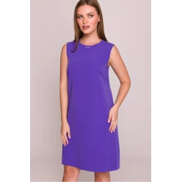 Elegantní šaty vyrobené z hladké, lehce elastické látky s saténovým povrchem, který jemně leskne a dodává celku výjimečný charakter. Model s kulatým výstřihem pod krkem zdobený kovovým detail, který dodává jemnou eleganci. Šaty bez rukávů, zapínající se na skrytý zip vzadu, co zajišťuje pohodlí nošení a minimalistický vzhled. Střih je rovný, trapezový, volný a neopínavý na postavu, ideální na každý den a do kanceláře. Šaty mají podšívku, která zvyšuje pohodlí a odolnost oblečení. Délka před koleno zdůrazňuje ženskou siluetu a zároveň poskytuje volnost pohybu. Navrženo a ušito v Polsku.