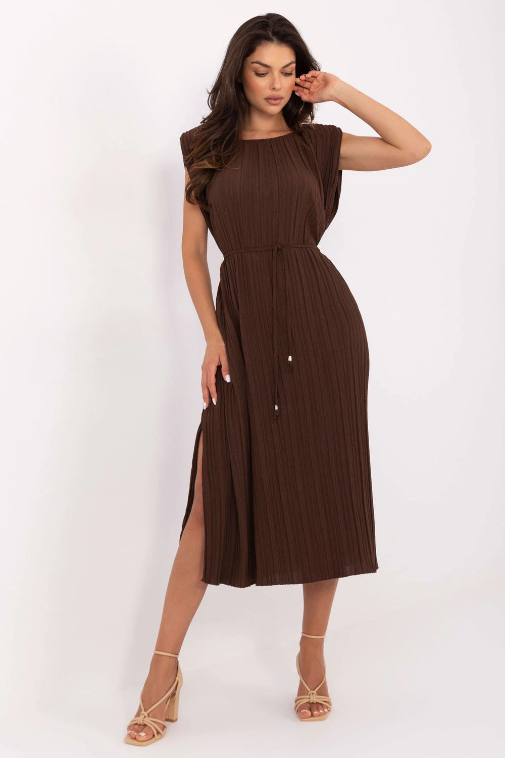 Letní plisované šaty s jednoduchým střihem jsou ideální volbou pro každodenní i společenské události. Vyrobené z lehkého, prodyšného polyesteru, skvěle poslouží v teplejších dnech, zajistí pohodlí a volnost pohybu. Model midi délky, bez rukávů, s klasickým kulatým výstřihem decentně zdůrazňuje postavu, zůstává pohodlný a univerzální. Další výhodou jsou rozparky po stranách dole, které šatě dodávají lehkost a jemně odhalují nohy během pohybu. Hladký, jednobarevný materiál zajišťuje, že šaty jsou nadčasové a snadno se kombinují. Součástí je pásek k zapínání v pasu, který umožňuje zdůraznit ženskou siluetu a dodat celku elegantnější charakter. Skvělá volba na setkání s přáteli, letní večeři nebo rodinné oslavy. Polyester 100 %