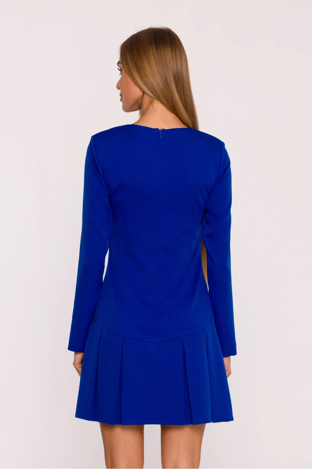 Klasické šaty vyrobené z hladké látky s matným povrchem jsou návrhem, který spojuje jednoduchost a eleganci v moderním podání. Minimalistický design zaručuje skvělý vzhled jak v každodenních outfitcích, tak i při formálních příležitostech. Model má decentní dekolt ve tvaru lodičky a dlouhé rukávy, které dodávají celku nadčasový charakter. Šaty se zapínají na skrytý zip na zádech, co zajišťuje pohodlí a estetické dokončení. Střih lehce přiléhavý v horní části je doplněn spodkem v kontrafašonu, který dodává siluetě lehkost a ženskou eleganci. Jednoduchá, pasovaná linie decentně zdůrazňuje postavu a mini délka dodává šatům moderní, dívčí charakter. Navrženo a ušito v Polsku, vytvořeno pro ženy, které oceňují nadčasovou eleganci v minimalistickém provedení.