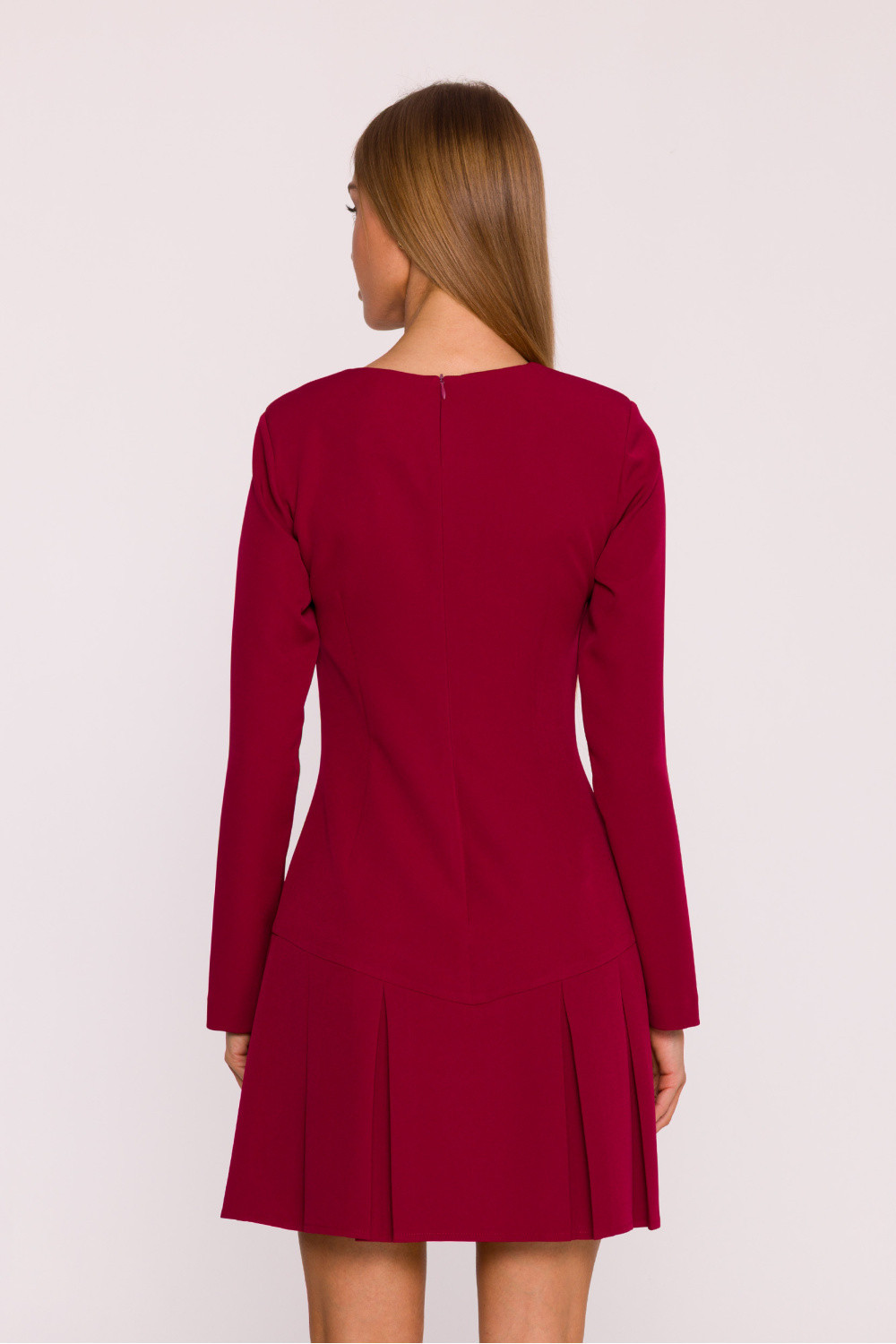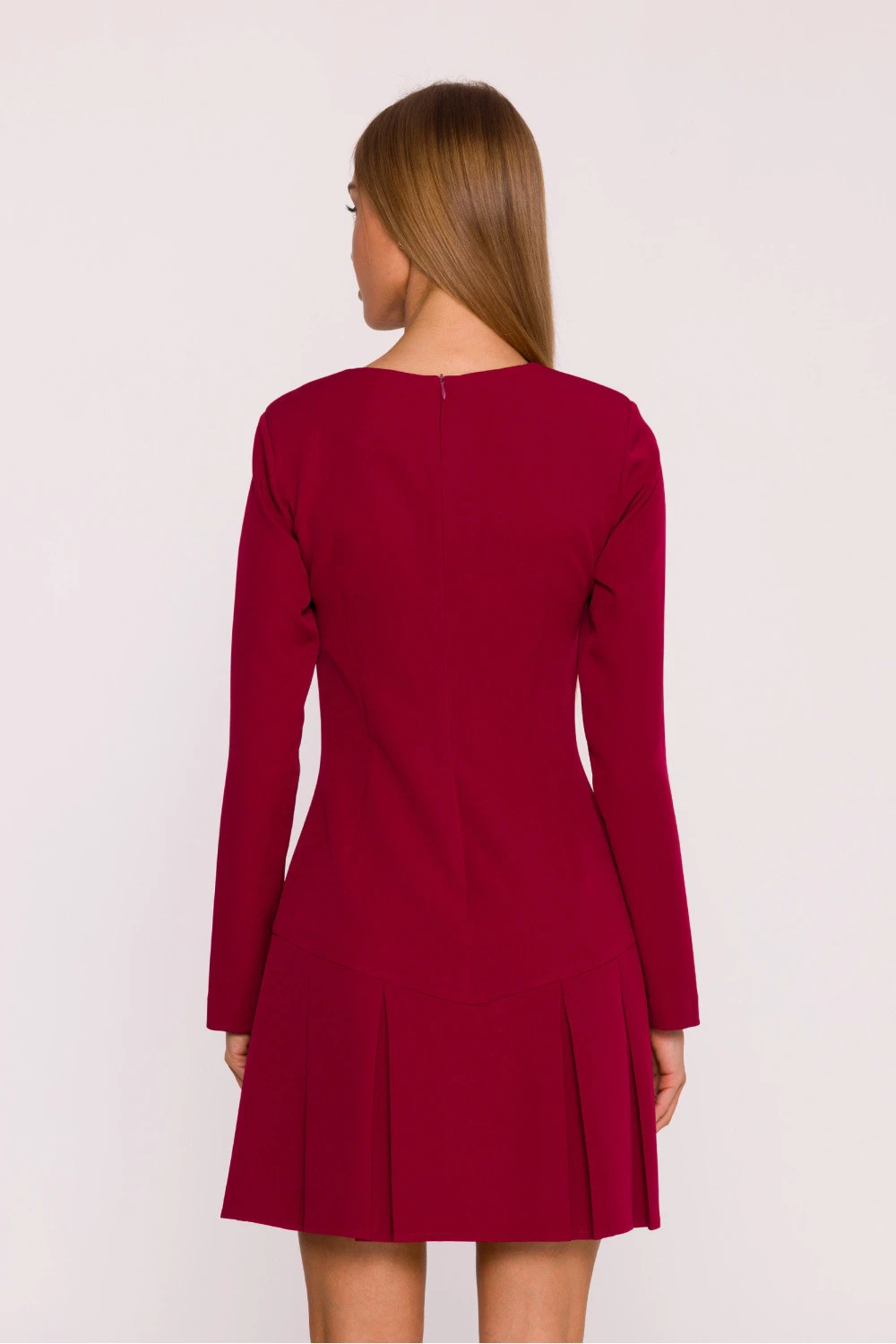 Klasické šaty vyrobené z hladké látky s matným povrchem jsou návrhem, který spojuje jednoduchost a eleganci v moderním provedení. Minimalistický design zaručuje, že se šaty skvěle hodí jak do každodenních outfitů, tak i na formální události. Model má jemný výstřih ve tvaru lodičky a dlouhé rukávy, které dodávají celku nadčasový charakter. Šaty se zapínají na skrytý zip vzadu, co zajišťuje pohodlí a estetické provedení. Střih lehce přiléhavý v horní části je oživen spodní částí v kontrafałdách, které dodávají postavě lehkost a ženskou eleganci. Jednoduchá, tvarovaná linie jemně zdůrazňuje postavu a mini délka dodává šatům moderní, dívčí charakter. Navrženo a ušito v Polsku pro ženy, které oceňují nadčasovou eleganci v minimalistickém provedení.