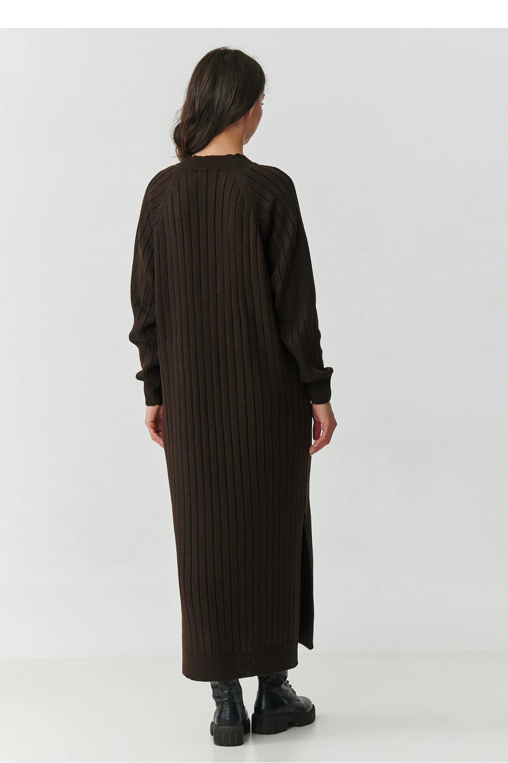 Vsadíme na jedinečnou eleganci a maximální pohodlí! Tato dlouhá pletená svetráková šaty jsou ideální volbou pro chladnější dny, spojují v sobě nadčasový styl a pohodlí, ve kterém se budete cítit žensky a módně. Vyrobené z 100% vysoce kvalitního akrylu, jsou měkké, příjemné na dotek a snadno se udržují. Volný střih s výstřihem do V krásně zdůrazňuje postavu, a praktické rozdělení po stranách dodává lehkost a volnost pohybu. Šaty skvěle ladí jak s elegantními botami, tak s těžšími botami ve vojenském stylu, vytvářejíce styling od každodenního až po výraznější. K dispozici v několika decentních barvách: černá, cappuccino, čokoládová, grafitový melanz a šedý melanz, díky čemuž snadno vyberete ideální odstín ke svému stylu. Jsou to šaty, které se hodí jak do každodenního života, do práce, tak i na večerní setkání, vždy vypadáte módně a žensky.