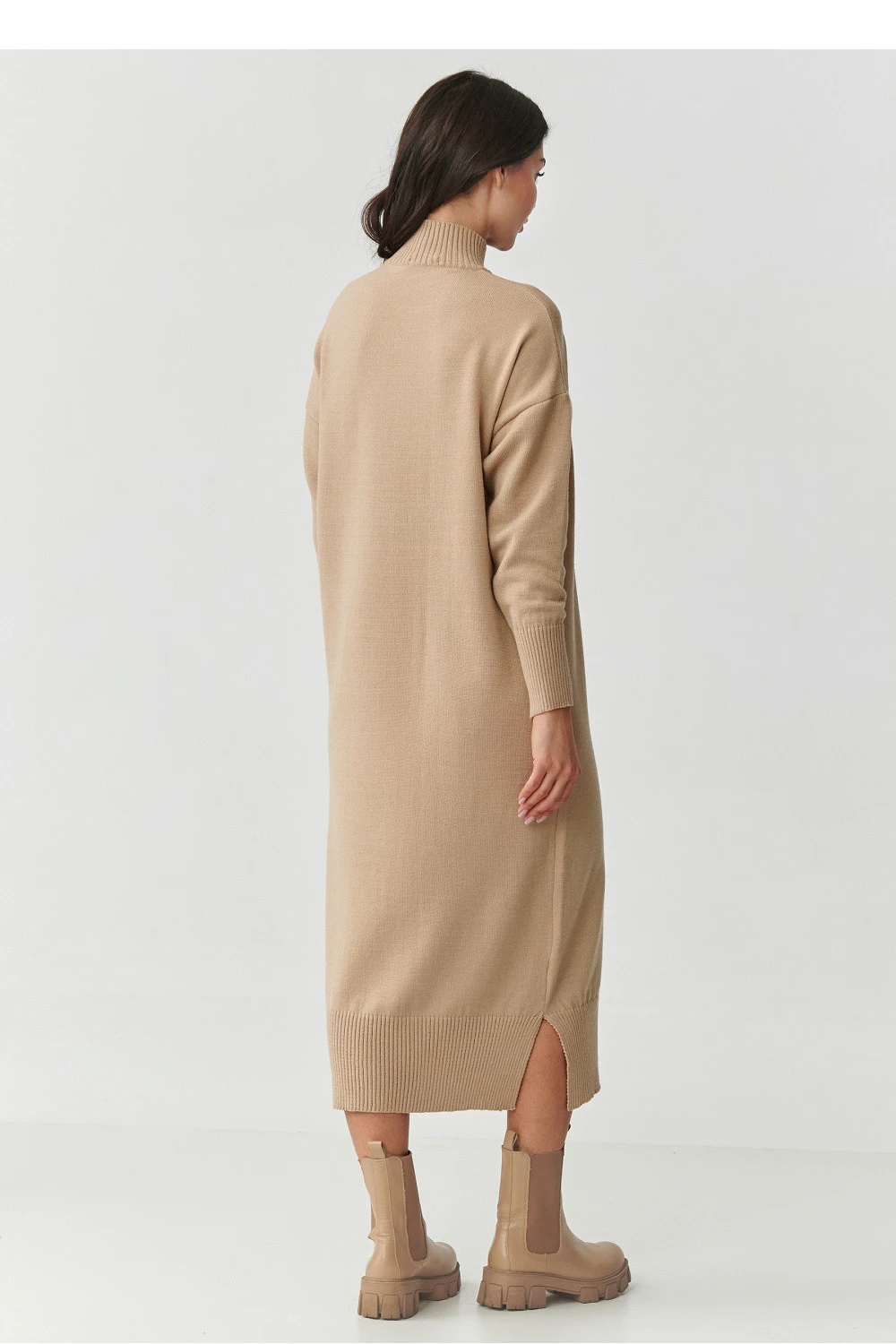 Objevte nadčasovou klasiku v moderním provedení - středně dlouhé svetrové šaty s rolákem jsou ideální volbou na chladnější dny, kdy chcete vypadat stylově a cítit se pohodlně. Jejich jednoduchý, lehce oversized střih decentně zúží postavu a délka nad kolena z nich činí vhodnou volbu jak do práce, tak na schůzky nebo večerní výstupy. Vyrobena z vysoce kvalitního pleteného materiálu s pečlivě vybraným složením: viskóza je měkká, prodyšná a příjemná na dotek, PBT zaručuje pružnost a trvanlivost a nylon zajišťuje, že šaty si udrží svůj tvar a nekoulejí se. Rolák jemně obepíná krk a dodává elegantní charakter, zatímco dlouhé rukávy zajistí pohodlí a teplo. Jejich minimalistický střih umožňuje hravost s doplňky, skvěle vypadají s páskem, kozačkami nebo botkami a rozparky na bocích dodávají lehkost a zdůrazňují ženský styl. K dispozici v stylových, univerzálních barvách, které skvěle zapadají do podzimních a zimních trendů. Tyto středně dlouhé svetrové šaty jsou must-have v každém šatníku. S nimi vytvoříte mnoho módních stylizací, které kombinují pohodlí a eleganci.