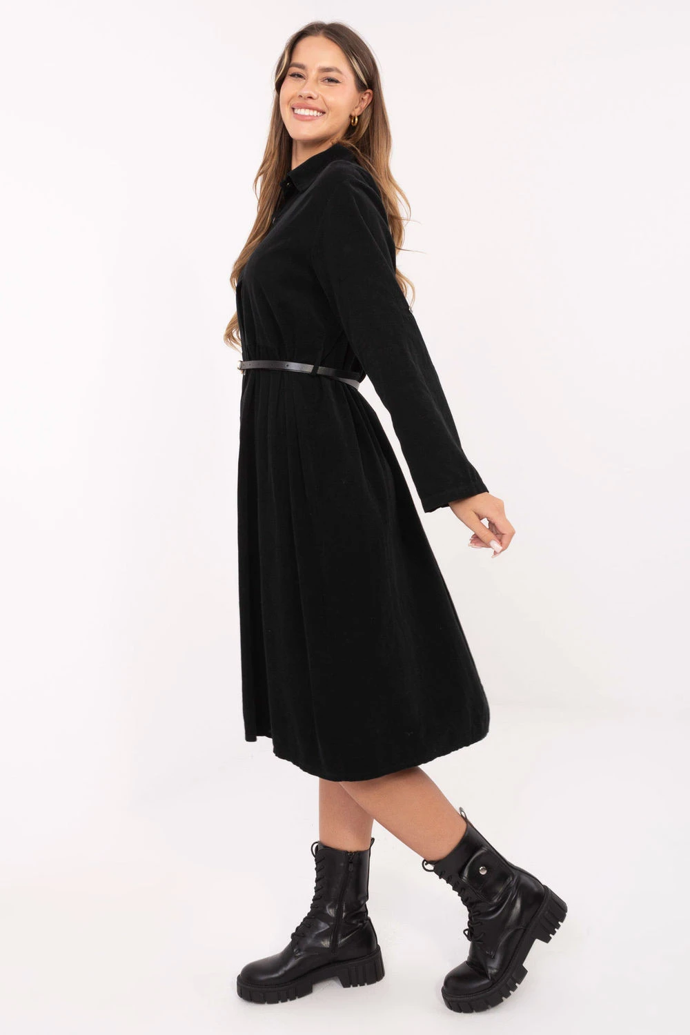 Klasické a stylové košilové šaty s rozšířeným střihem jsou skvělou volbou na každý den i do práce. Vyrobené z vysoce kvalitní bavlny jsou prodyšné, pohodlné a příjemné na nošení. Model midi délky má dlouhé rukávy, límec a zapínání na knoflíky, co mu dodává elegantní, ale zároveň ležérní charakter. V pasu je pásek na zapínání, který krásně zdůrazní siluetu a umožní přizpůsobit šaty postavě. Hladký vzor dělá z těchto šatů nadčasový kousek šatníku, který snadno zkombinujete jak s elegantními pracovními botami, tak s obuví na ploché podešvi v každodenních outfitcích.