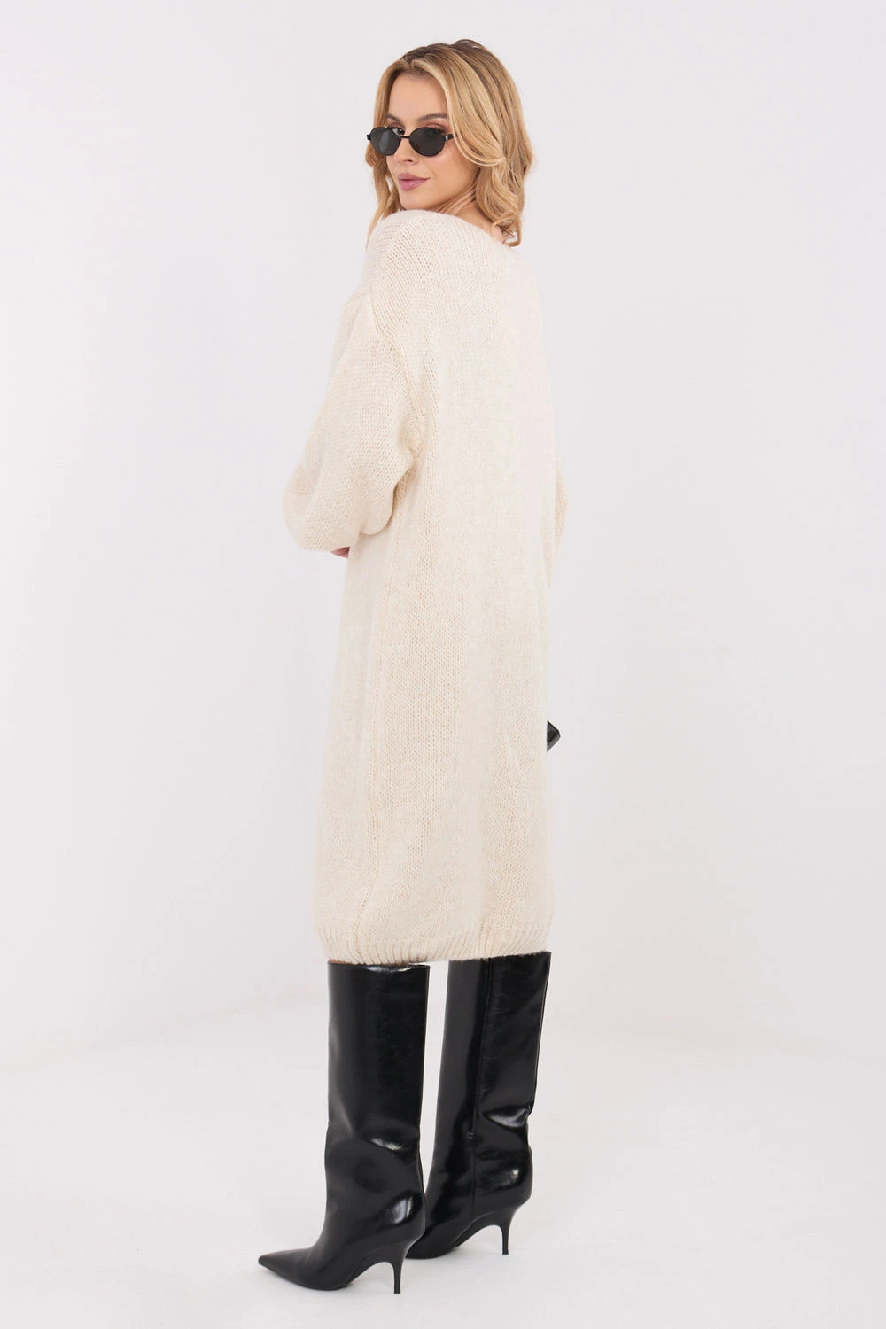 Volný svetrový šaty ve stylu oversize, ideální na každodenní nošení i do práce. Vyrobený z měkké, příjemné na dotek pleteniny, poskytuje pohodlí a volnost pohybu po celý den. Model midi délky má hladký, minimalistický design, který zdůrazňuje jeho univerzální, nadčasový charakter. Dlouhý rukáv a výstřih do srdce dodávají ženskou lehkost a zároveň zajistí, že šaty skvěle padnou na postavě. Bez zapínání jsou velmi pohodlné a snadno se oblékají. Jedná se o skvělý návrh pro ženy, které ocení kombinaci pohodlí, volnosti a klasického stylu ve svých denních outfitováních.