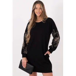 Tato každodenní dresová šaty jsou ideální kombinací pohodlí a jemné elegance. Vyniká dominantní vyšívání na rukávech, které celé šaty dodává výjimečný ženský charakter. Šaty jsou vyrobeny z směsi viskózy a elastanu, jsou měkké, příjemné na dotek a jemně pružné, díky čemuž se skvěle přizpůsobují postavě. Model má krátkou délku, dlouhý rukáv a kulatý výstřih, což je dělá pohodlné a univerzální na každý den. Šaty se oblékají přes hlavu, bez zapínání, a jejich střih doplňují objemné rukávy, které přidávají lehkosti a moderního výrazu. Praktickou výhodou jsou kapsy skryté v bočních švech, které zvyšují funkčnost a pohodlí. Stylové, příjemné na nošení a ideální na každodenní příležitosti, skvělá volba pro ženy, které oceňují pohodlí v elegantním provedení.