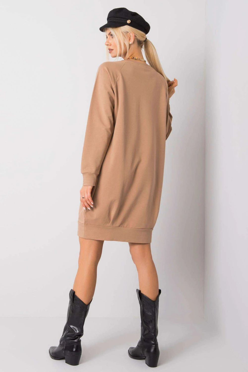 Šaty s jednoduchým střihem jsou ideální volbou na každý den. Vyrobené z vysoké kvality bavlny s přídavkem elastanu, zajistí pohodlí a volnost pohybu po celý den. Hladký materiál dodává šatům univerzální minimalistický charakter, díky čemuž se snadno kombinují s různými stylizacemi. Model s délkou nad kolena a dlouhým rukávem se hodí do každodenních situací jako je práce, procházka nebo setkání s přáteli. Kulatý výstřih zdůrazňuje klasický tvar šatů a absenci zapínání zvyšuje pohodlí nošení. Další výhodou jsou praktické kapsy ukryté v bočních švech, které zvyšují funkčnost a dodávají celkovému vzhledu uvolněný, ležérní styl.