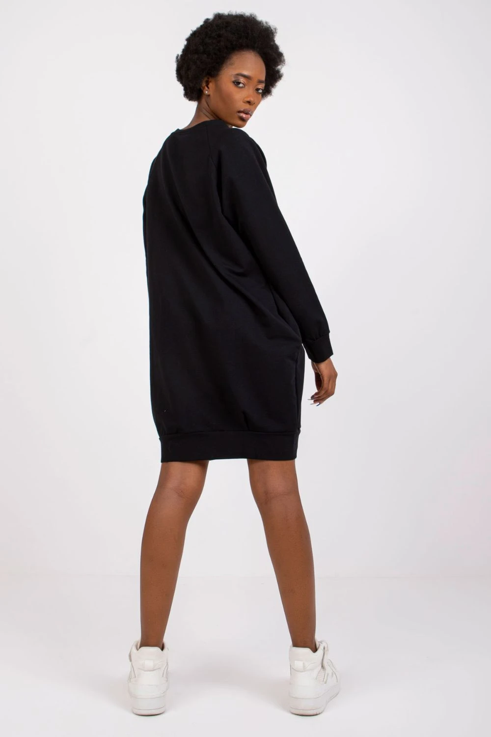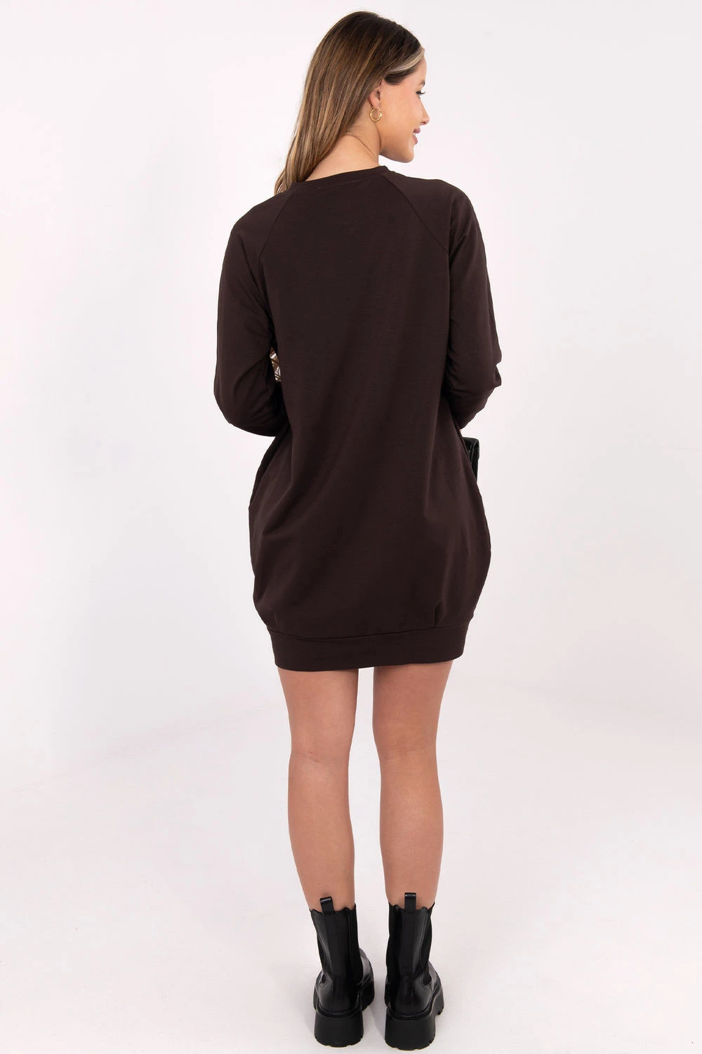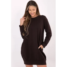 Šaty z úpletu v jednoduchém střihu jsou ideálním návrhem na každý den. Vyrobené z vysoké kvality bavlny s přídavkem elastanu, zajistí pohodlí nošení a volnost pohybu po celý den. Hladký materiál jí dodává univerzální, minimalistický charakter, díky čemuž ji lze snadno sladit s různými styly. Model po kolena s dlouhým rukávem se osvědčí v každodenních situacích, při práci, procházce nebo setkání s přáteli. Kulatý výstřih zdůrazňuje klasický tvar šatů, a absence zapínání zvyšuje pohodlí použití. Další výhodou jsou praktické kapsy skryté v bočních švech, které zvyšují funkcionalitu a dodávají celku volný, neformální styl.