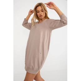 Pohodlné šaty s jednoduchým střihem jsou skvělým návrhem pro každodenní stylizace, kombinující pohodlí nošení s neformálním stylem. Hladký vzor jí dodává univerzální charakter, díky čemuž ji lze snadno sladit s různými doplňky. Model po kolena s praktickými kapsami zaručuje funkčnost a volnost pohybu. 3/4 rukáv umožňuje nosit šaty většinu roku a ženský výstřih jemně zdůrazňuje siluetu a dodává lehkost. Bez zapínání zdůrazňuje jednoduchý a pohodlný střih modelu. Šaty jsou vyrobeny z kvalitní směsi bavlny a elastanu, díky čemuž jsou měkké, elastické a příjemné na dotek. Ideální volba pro ženy, které oceňují pohodlí, praktické detaily a nadčasový styl na každý den.
