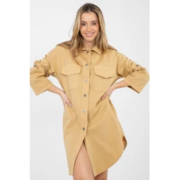 Pohodlné košilové šaty s voľným strihom, ideálne na každodenné štýlové oblečenie. Model so zapínaním na gombíky a klasickým golierom, ktorý dodáva celku nadčasový charakter. Hladký vzor robí šaty neuveriteľne univerzálnymi a ľahkými na štýlovanie. Vyrobené z príjemnej na dotyk bavlny s prídavkom elastanu, zabezpečujú pohodlné nosenie a voľnosť pohybov. Dlhý rukáv s možnosťou zloženia umožňuje prispôsobiť šaty ročnému obdobiu a individuálnym preferenciám. Dĺžka pod kolená a spodok jemne zaoblený podčiarkuje postavu a dodáva ľahkosť. Na prednej strane sú praktické vrecká s ploštičkami, ktoré zdôrazňujú štýl šaty. Skvelá ponuka na každý deň do práce, prechádzku alebo stretnutie v uvoľnenej atmosfére.