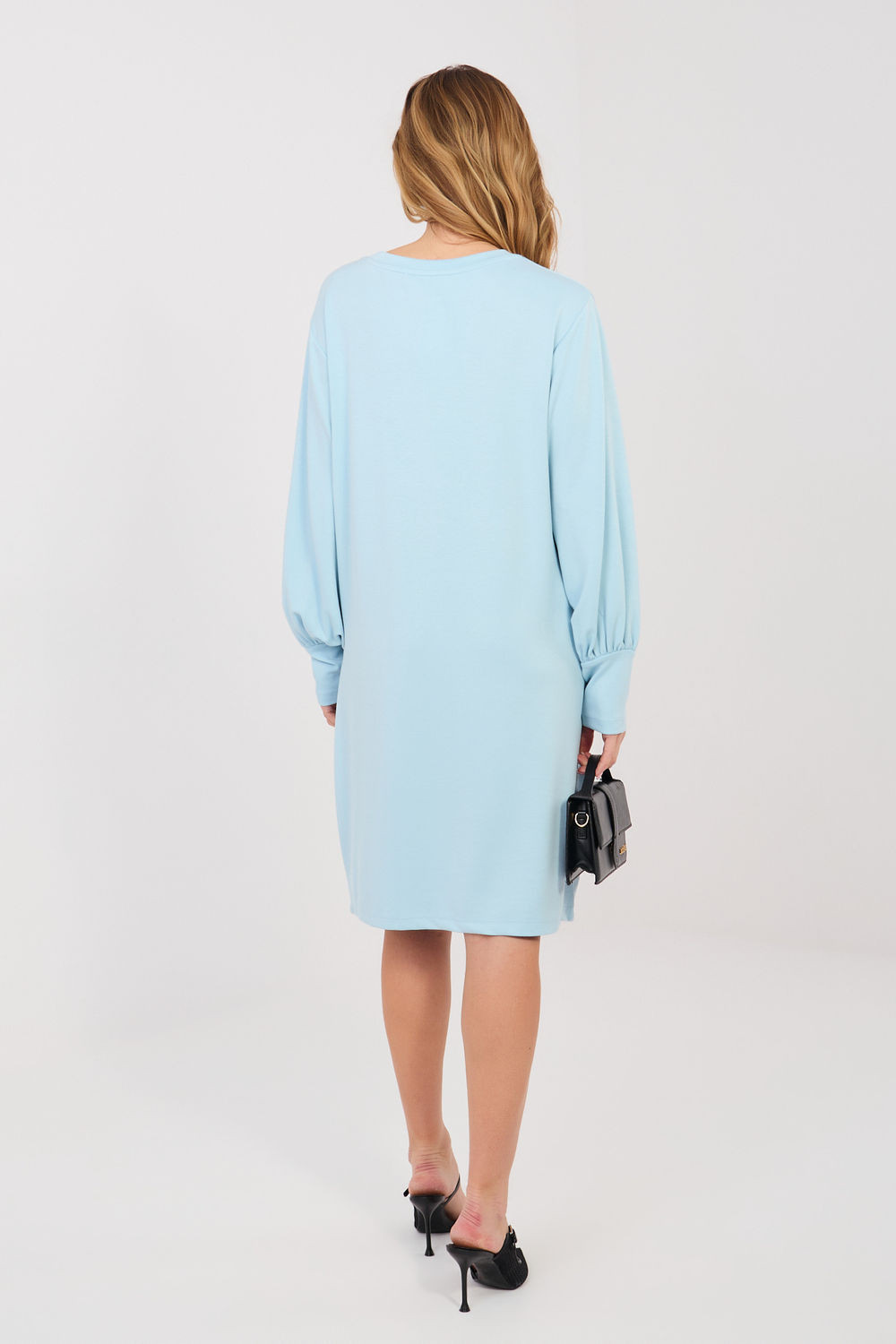 Šaty z jemné látky typu máslo jsou návrhem, který okouzluje svou měkkostí, jemností a mimořádně příjemným dotekem. Ideální na každodenní stylizace i do práce spojuje pohodlí nošení s ženskou jednoduchostí. Model s jednoduchým střihem a hladkým vzorem vypadá minimalisticky a zároveň elegantně. Vyrobena z směsi viskózy a elastanu se perfektně přizpůsobí postavě, je elastická a poskytuje plnou svobodu pohybu. Šaty mají dlouhé nadýchané rukávy, které dodávají modelu originální, módní charakter. Kulatý výstřih zdůrazňuje klasický styl a délka před kolena činí model univerzálním a ideálním na mnoho každodenních příležitostí. Bez zapínání zaručuje pohodlí a rychlé oblékání, což z ní dělá skvělou volbu pro rušné dny. Jedná se o vynikající šaty pro ženy, které oceňují měkké materiály, pohodlí a decentní eleganci každý den.