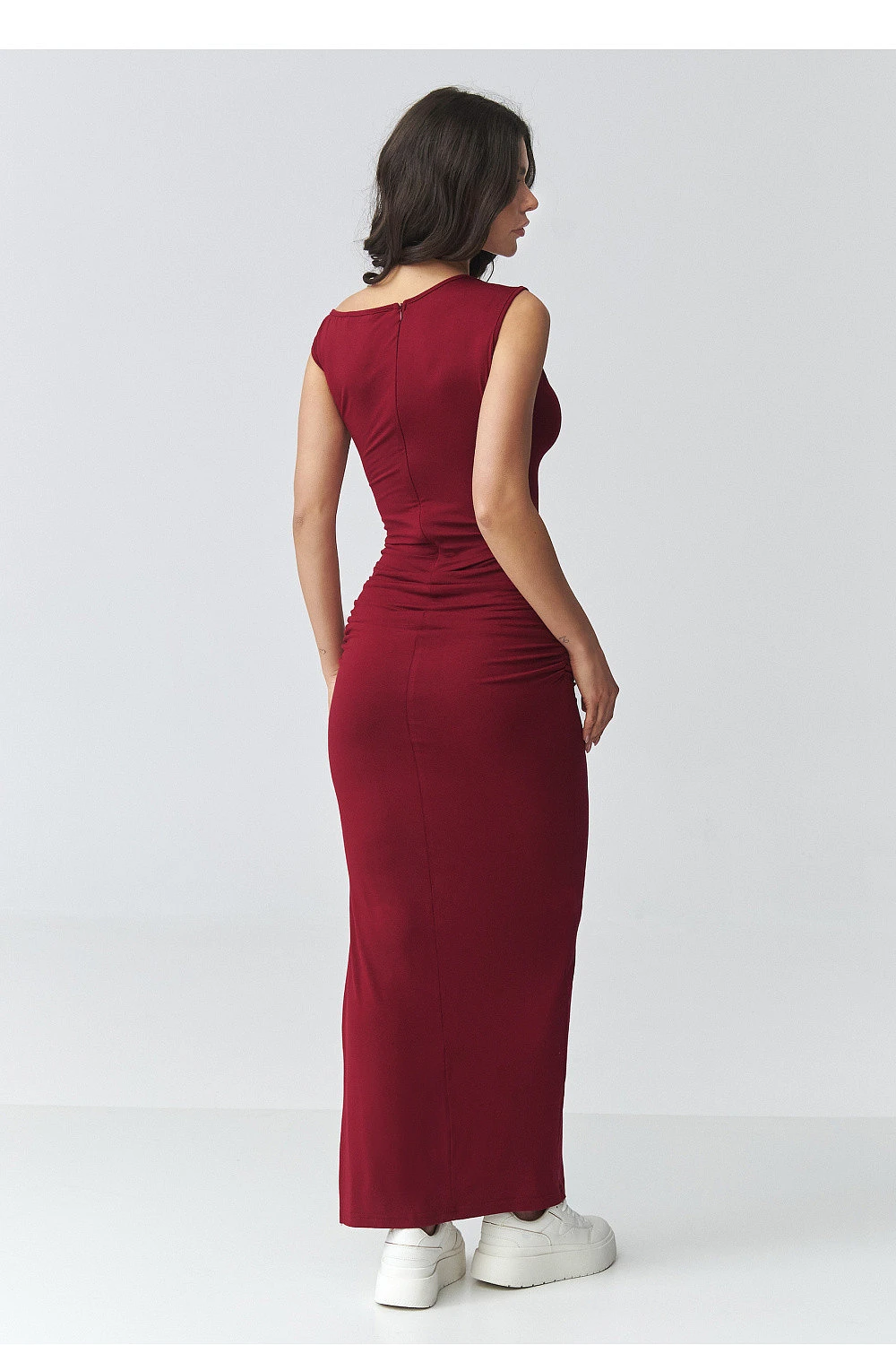 Tato přizpůsobené maxi šaty jsou ideální kombinací elegance a moderního stylu. Model sahající až po kotníky krásně zdůrazňuje postavu, a jemné rýhy v pasu a na bocích opticky tvarují siluetu, poskytují efekt zeštíhlení. Jedná se o skvělou volbu pro ženy, které ocení elegantní večerní šaty s nadčasovým střihem. Horní část s jemným lodním výstřihem vystavuje ramena a krk, dodává stylizaci lehkost a ženský charakter. Bez rukávů se model skvěle hodí jak na slavnostní příležitosti, tak do koktejlových outfitů. Vysoký rozparek na noze přidává celku smyslnosti a volnosti pohybu. Vyrobena z elastického, příjemného materiálu, přizpůsobená šaty ke střihu zajistí pohodlí po celý den či večer. Jedná se o ideální šaty na svatbu, na párty, ale i stylový návrh na rande či elegantní večeři. Vsadte na ženské maxi šaty s rozparem, které zdůrazní vaše přednosti a zajistí, že se budete cítit výjimečně v každé situaci.