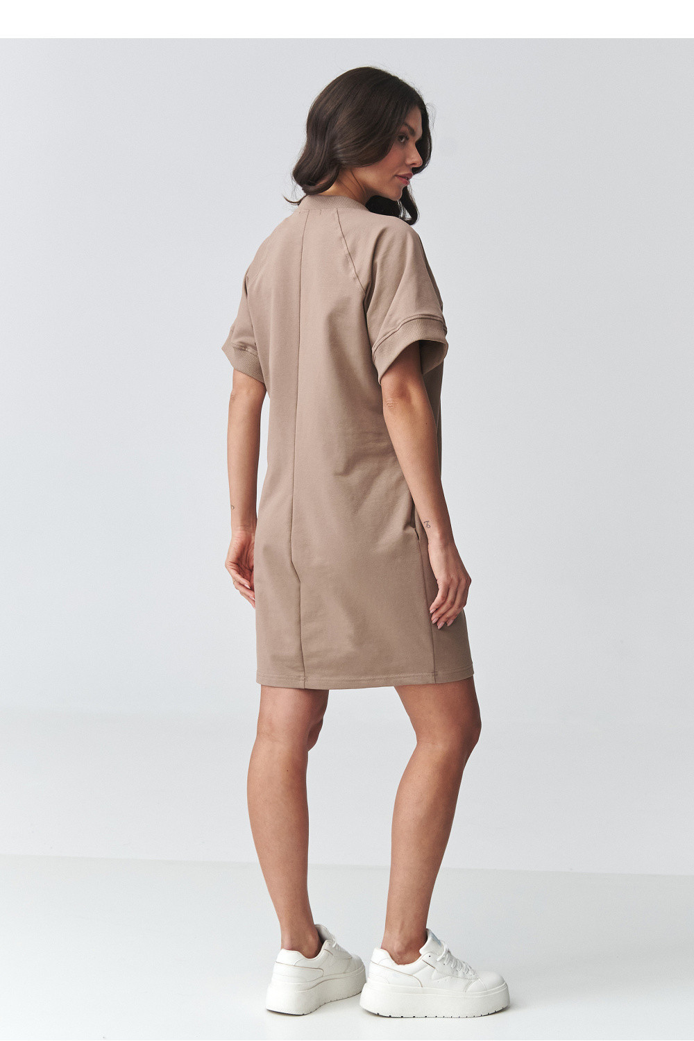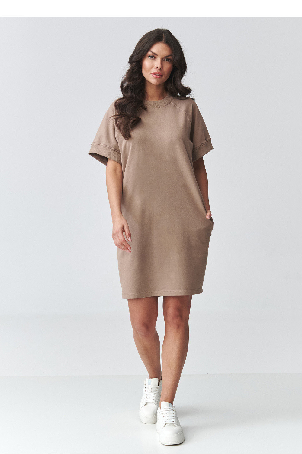 Elegantní a neuvěřitelně pohodlné oversized dresové šaty jsou ideální volbou pro ženy, které ocení spojení pohodlí a módního vzhledu. Volný střih zajišťuje plnou volnost pohybu a minimalistický střih dělá model dokonale zapadajícím do každodenního stylu. Model má krátký rukáv a klasický, zakrytý výstřih, co mu dodává univerzální charakter. Další výhodou jsou praktické kapsy po stranách, které zvyšují funkčnost a pohodlí nošení. Díky správné délce se šaty skvěle prezentují samy o sobě i ve spojení s oblíbenými doplňky. Jedná se o skvělé každodenní casualové šaty, které se hodí na procházky, nákupy, cestování nebo setkání v uvolněné atmosféře. Můžete je nosit s teniskami, kotníčkovými botami nebo elegantnější obuví, vytvářející různorodé stylizace.