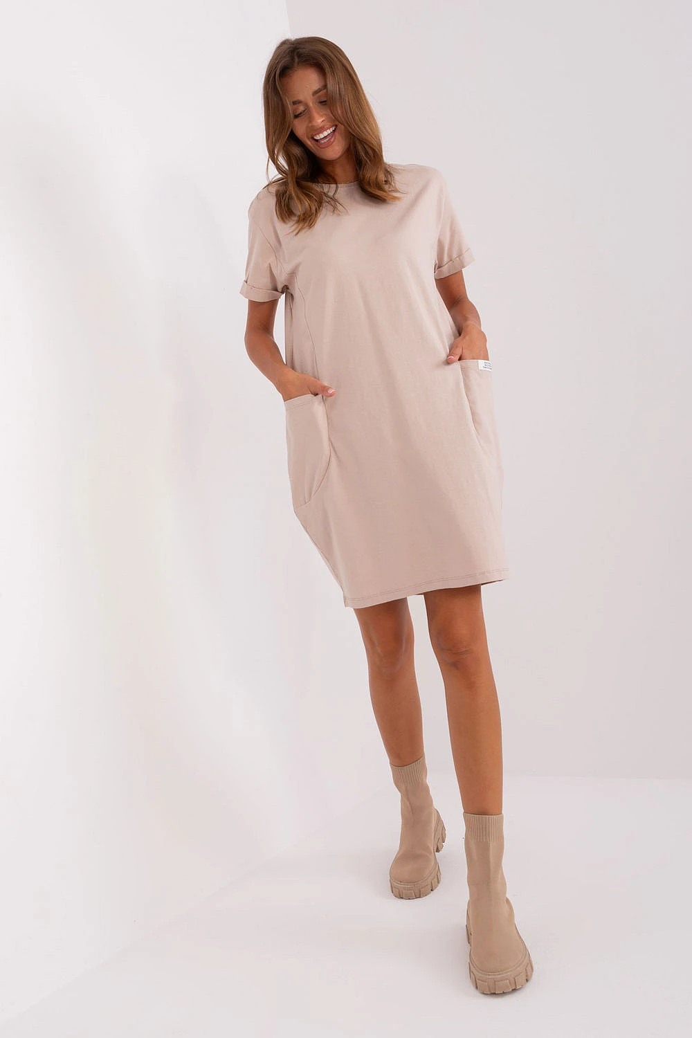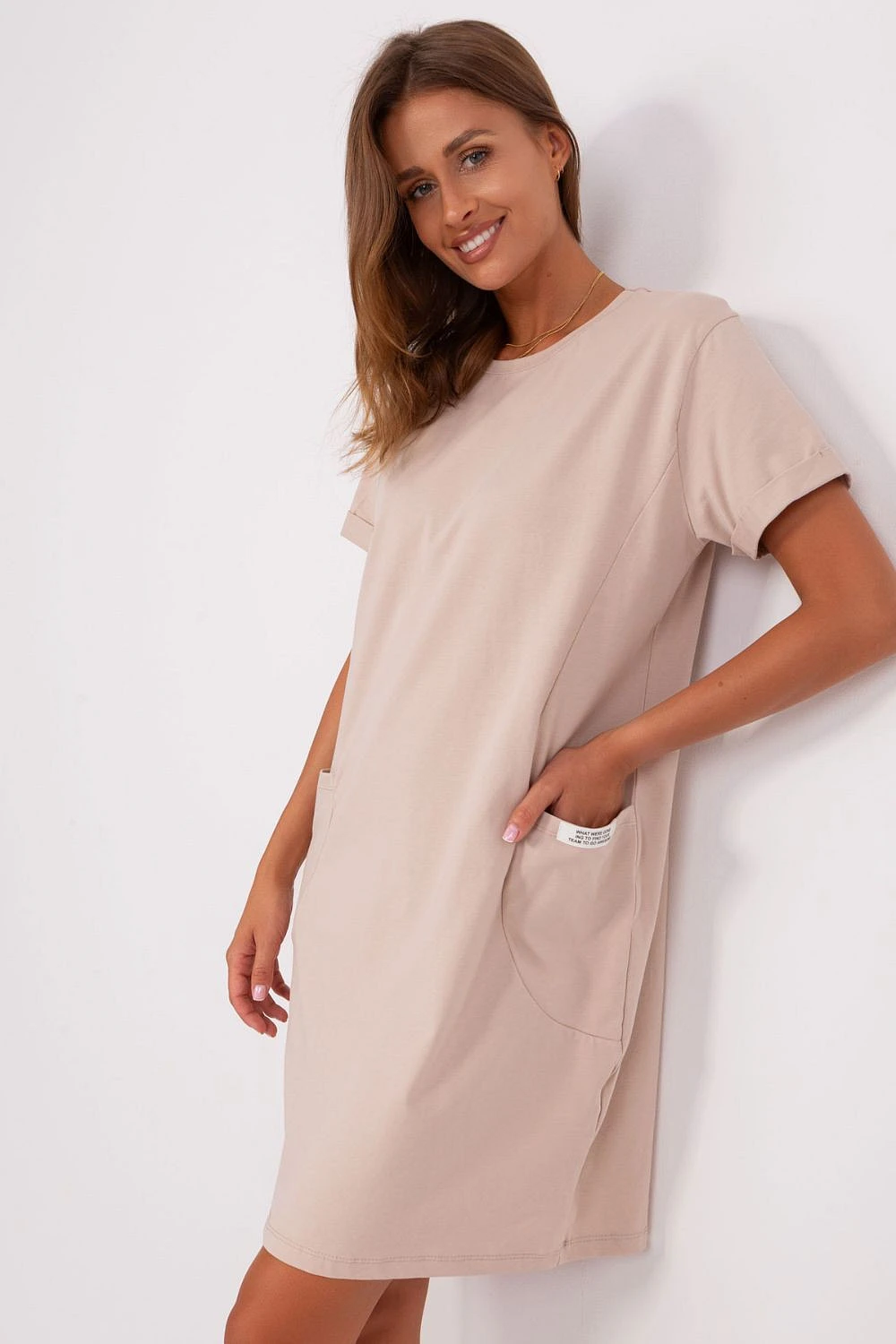 Pohodlné šaty s jednoduchým střihem, které byly navrženy s ohledem na každodenní nošení v teplých letních dnech. Jejich minimalistický, hladký design je univerzální a snadno se kombinuje, skvěle se hodí jak na procházku, nákupy, tak i setkání s přáteli. Model do poloviny stehen poskytuje volnost pohybu a pohodlí při nošení, krátký rukáv a klasický kulatý výstřih zdůrazňují ležérní charakter šatů. Bez zapínání zvyšuje pohodlí, stačí si je obléknout a hotovo. Šaty jsou vyrobeny z měkké a prodyšné směsi bavlny s přídavkem elastanu, díky čemuž se perfektně přizpůsobují postavě, zároveň zajišťují pružnost a komfort po celý den. Praktickým prvkem jsou kapsy na bocích, které přidávají funkčnost a zdůrazňují sportovní styl. Ideální volba pro ženy, které ocení pohodlí, jednoduchost a nadčasový vzhled.