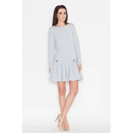 Šaty z bavlny, s dlouhými rukávy, ramena a boky nárameníky, ozdobnými knoflíky, žádné kapsy, zadní uzávěrem na zip.