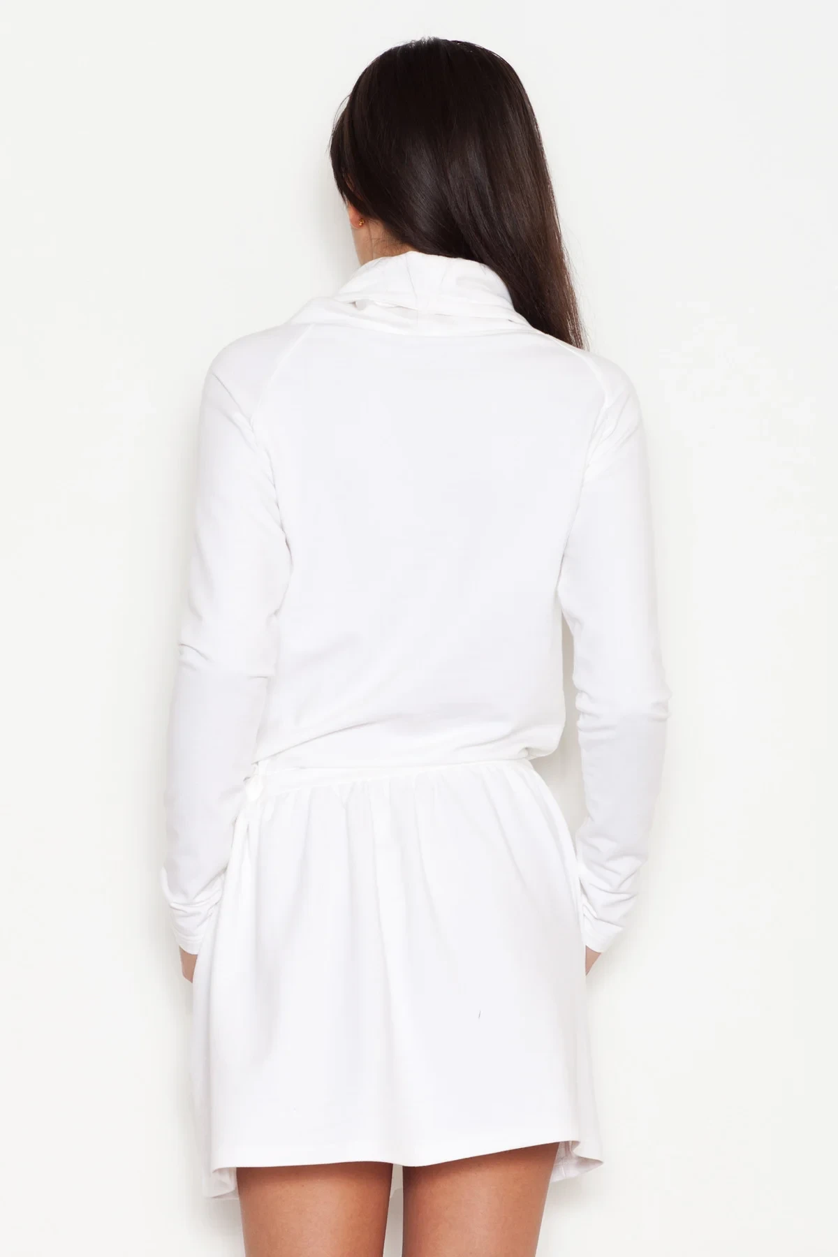 Šaty s volným golfu. Dlouhé rukávy rozšířený sukni. S golfovými a pasu řetězců dekorativní řetězce upravit.