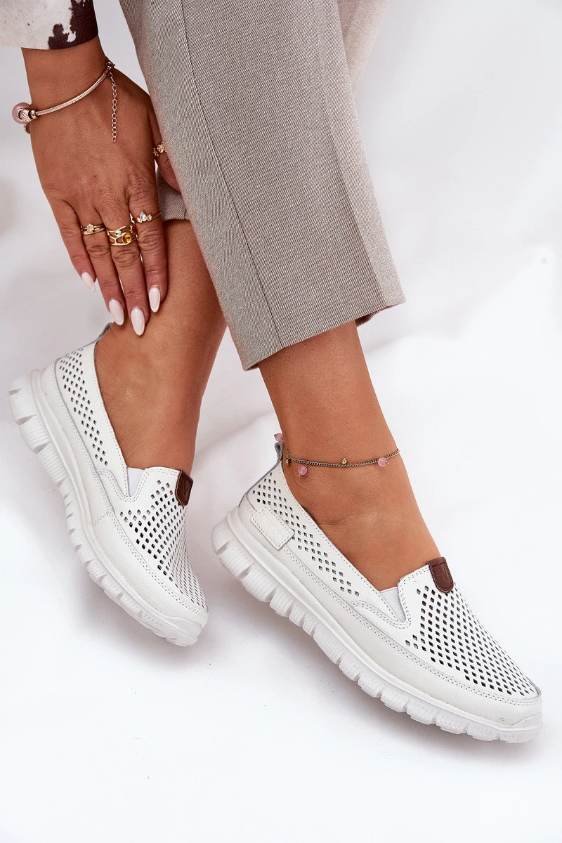 Děrované Baletky Z Přírodní Kůže Vinceza 95336 Bílé