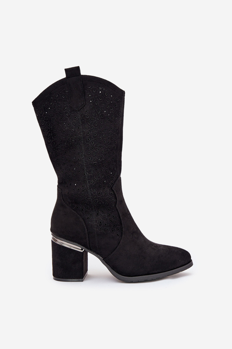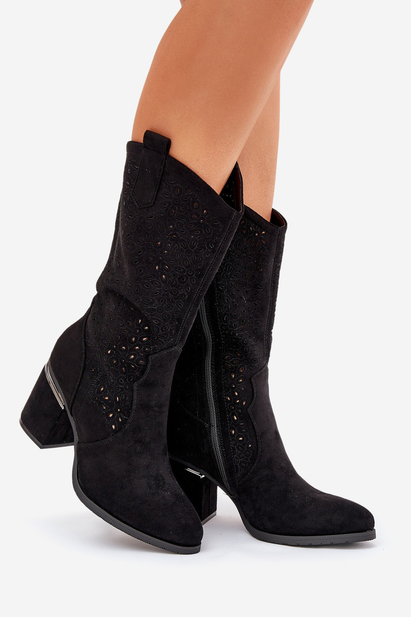 Děrované Kozačky Klasického Stylu Po Polovině Lýtka S.Barski HY51-238 Černé
